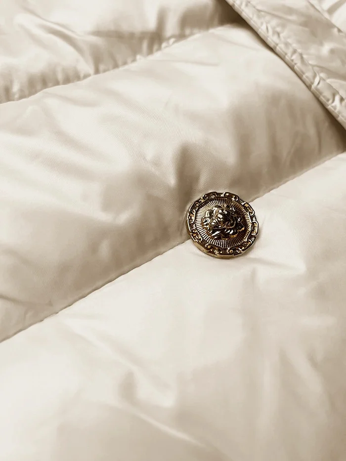 Dámský péřový kabát v perleťové barvě se zapínáním na knoflíky (5M3160/1-281)