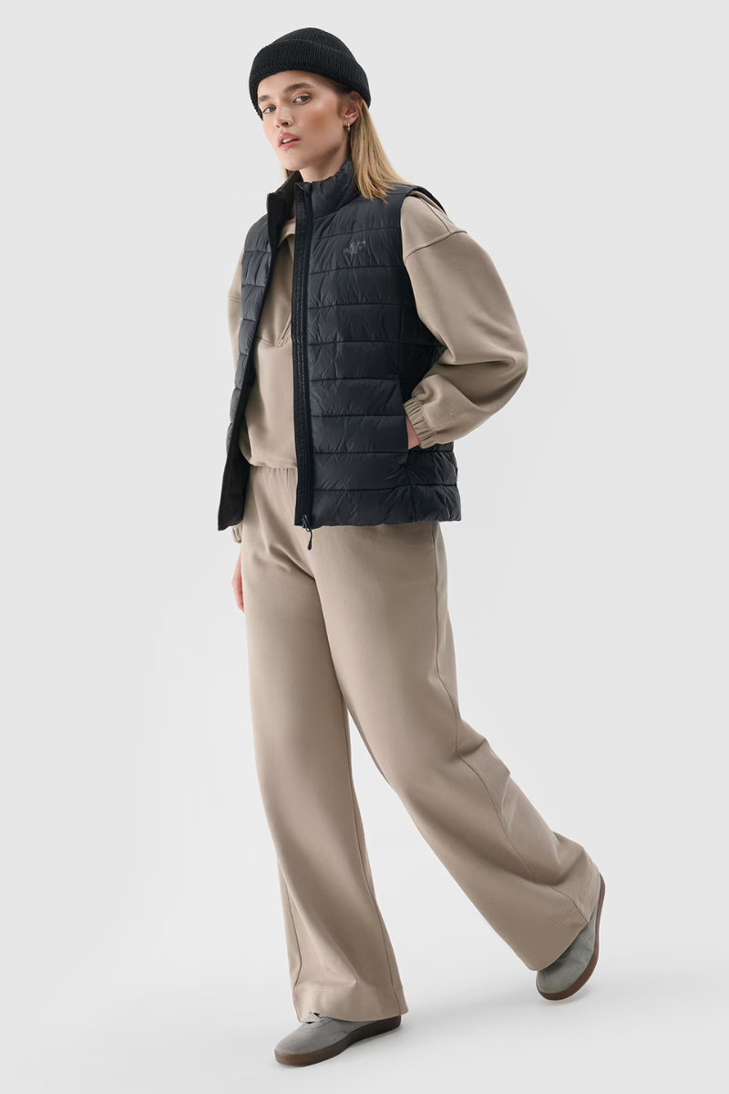 Dámský péřový vestník s límcem má lehkou konstrukci, díky čemuž ho lze nosit jak při každodenních, tak sportovních aktivitách během teplejších dnů v přechodném období. Jeho nízká hmotnost znamená, že během pohybu nepředstavuje žádnou další zátěž, a zároveň je efektivní izolační vrstvou, zejména pod voděodolnou membránou. Nejen, že chrání před chladem, ale také se skvěle hodí jako prvek vrstveného oblečení. Snadno se skládá a ukládá. Má přiléhavý slim střih, který se těsně přizpůsobuje tělu a standardní délku sahající po linii boků. Hydrofobní impregnace pokrývá vnější vrstvu materiálu a chrání ji před absorpcí vody. Tato vrstva způsobuje, že se vlhkost kondenzuje na povrchu tkaniny nebo pleteniny, odkud volně stéká. Krk chrání nízký límec. Po bocích se nacházejí 2 otevřené kapsy. Dámský péřový vestník se zapíná na jednosměrný hlavní zip s vnitřním větruodolným klopem, který omezuje pronikání chladu do vnitřku bundy. Spodní část bez regulace. Hlavní materiál: 100% polyamid Podšívka: 100% polyamid Výplň: 100% polyester