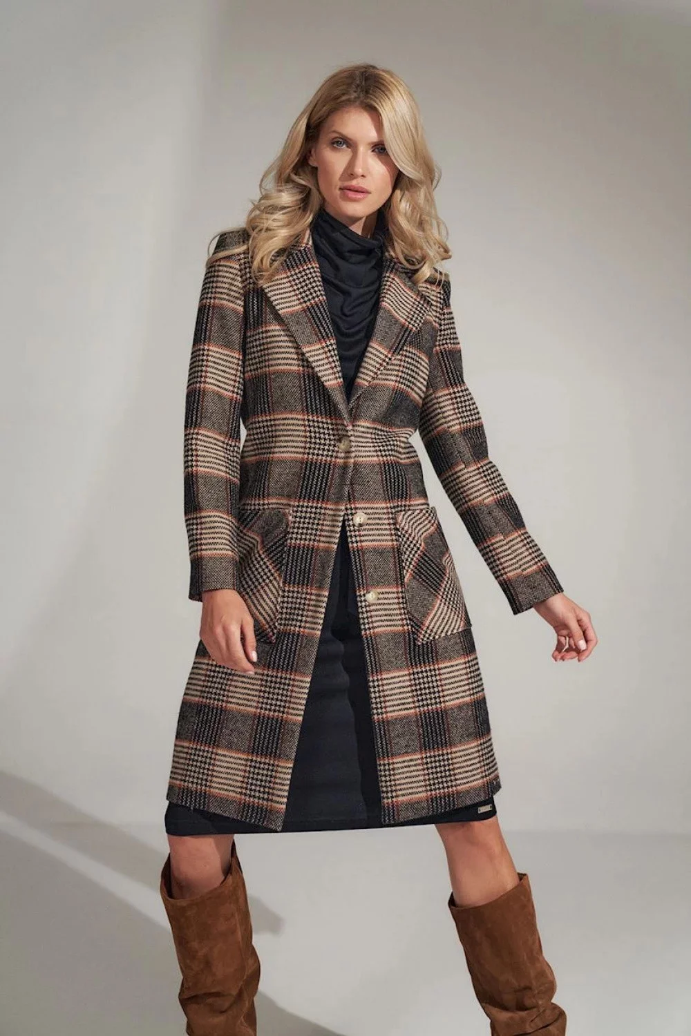 Produkt Dámský plášť / kabát model 16225827 - Figl prodáváme v těchto velikostech: L-40a barvách hnědá mix5902194383912