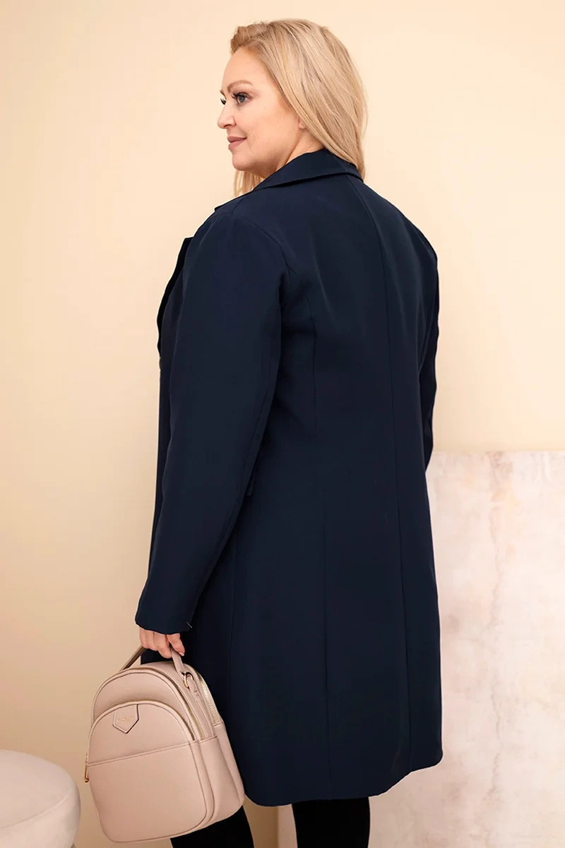 Stylový, dlouhý dámský kabát klasického střihu je vynikající volbou pro ženy, které oceňují eleganci a komfort na co den. Model zapínaný na knoflíky, s výrazným límcem a kapsami s klopami, se ideálně hodí jako doplněk jak elegantních, tak casualových stylizací. Délka pod boky a mírně elastický materiál zaručují pohodlí a volnost pohybu. Ideální na přechodné období – do práce, do města nebo na výjimečné příležitosti.
