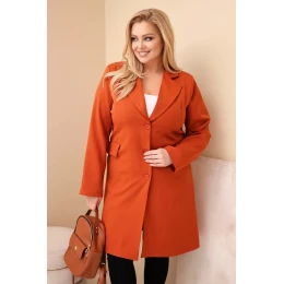 Dámský plášť Plus Size dlouhý s límcem a kapsami rudo
