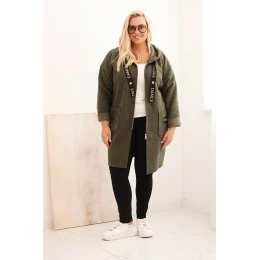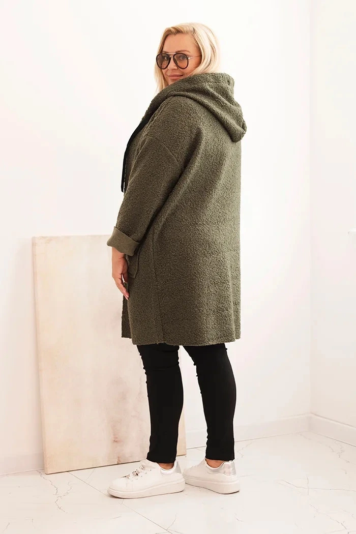 Dámský plášť Plus Size z umělé model 21297036 látky s kapucí a kapsami khaki - K-Fashion