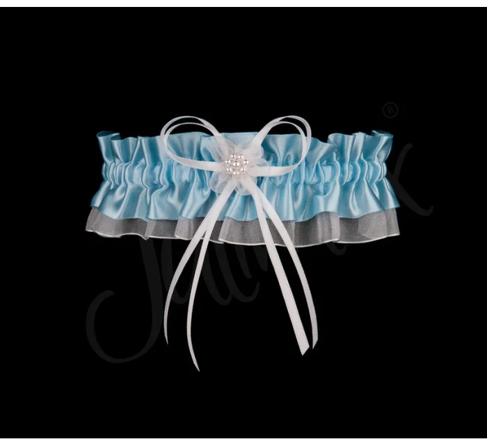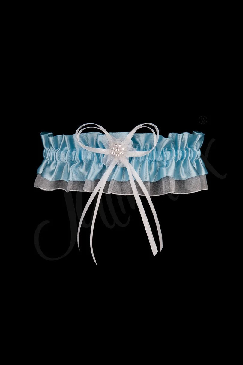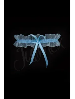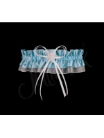 Dámský podvazek, který je vyrobený ze světle modrého saténu a z bílého tylu.