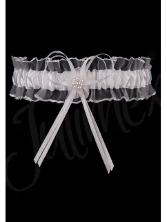 Podvazek je ozdobený mašličkou s jemnou květinkou.