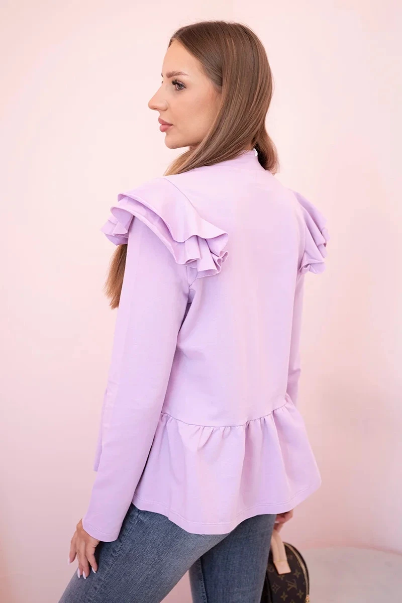 Dámský přehoz s volánky a stojáčkem fialka