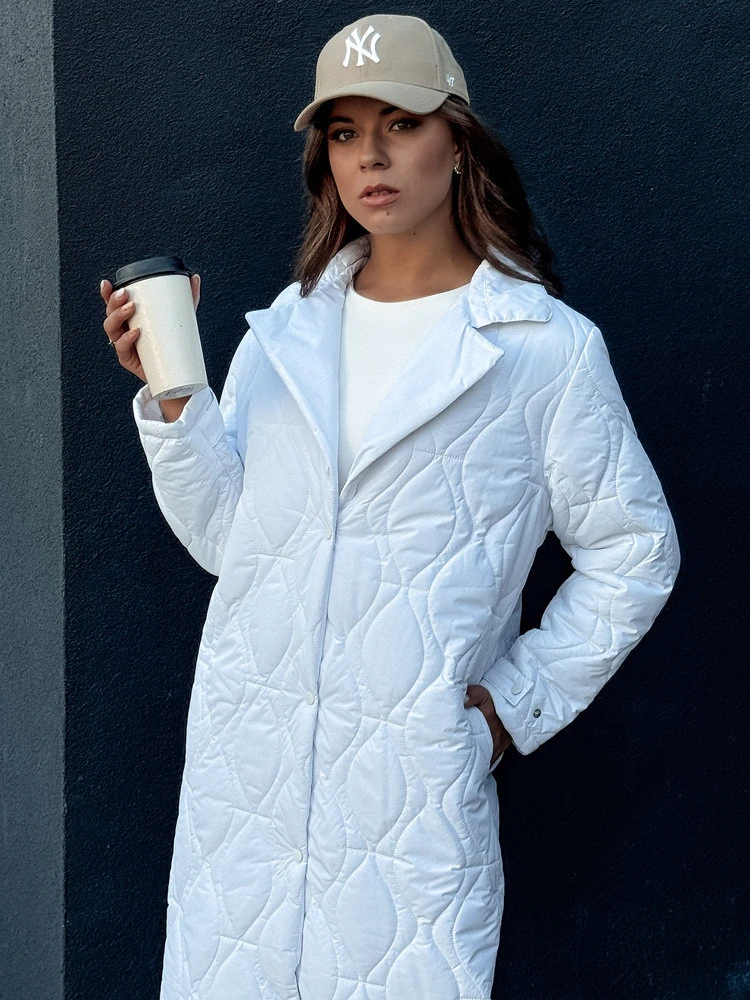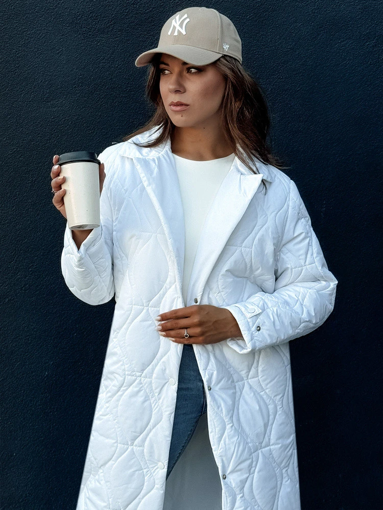 Dámský prošívaný dlouhý kabát TRENDIFY bílý FashionStreet TY4380