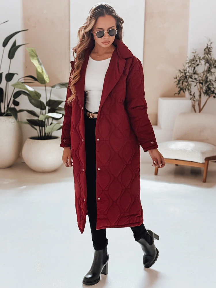 Dámský prošívaný dlouhý kabát TRENDIFY bordó FashionStreet TY4940