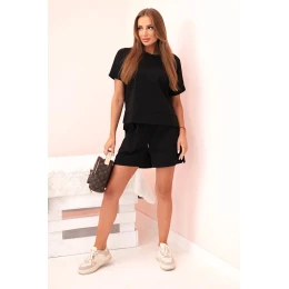 Hledáte stylovou a zároveň pohodlnou soupravu na teplejší dny? Tento dámský komplet z punto materiálu s krátkým rukávem a šortkami je ideální volbou pro ženy, které si cení pohodlí a módního vzhledu. Volný střih blůzy s prodlouženým zadním dílem a elastické šortky s vysokým pasem a kapsami zajišťují, že se tento komplet skvěle hodí jak na doma, tak i na procházky nebo víkendové výlety. Materiál punto s příměsí elastanu zaručuje příjemné přizpůsobení postavě a plnou volnost pohybu. Celek je laděn v ležérním stylu, který snadno zkombinujete s oblíbenými teniskami nebo sandály. Velikost je univerzální a bude vhodná pro dámy ve velikosti S, M nebo L.