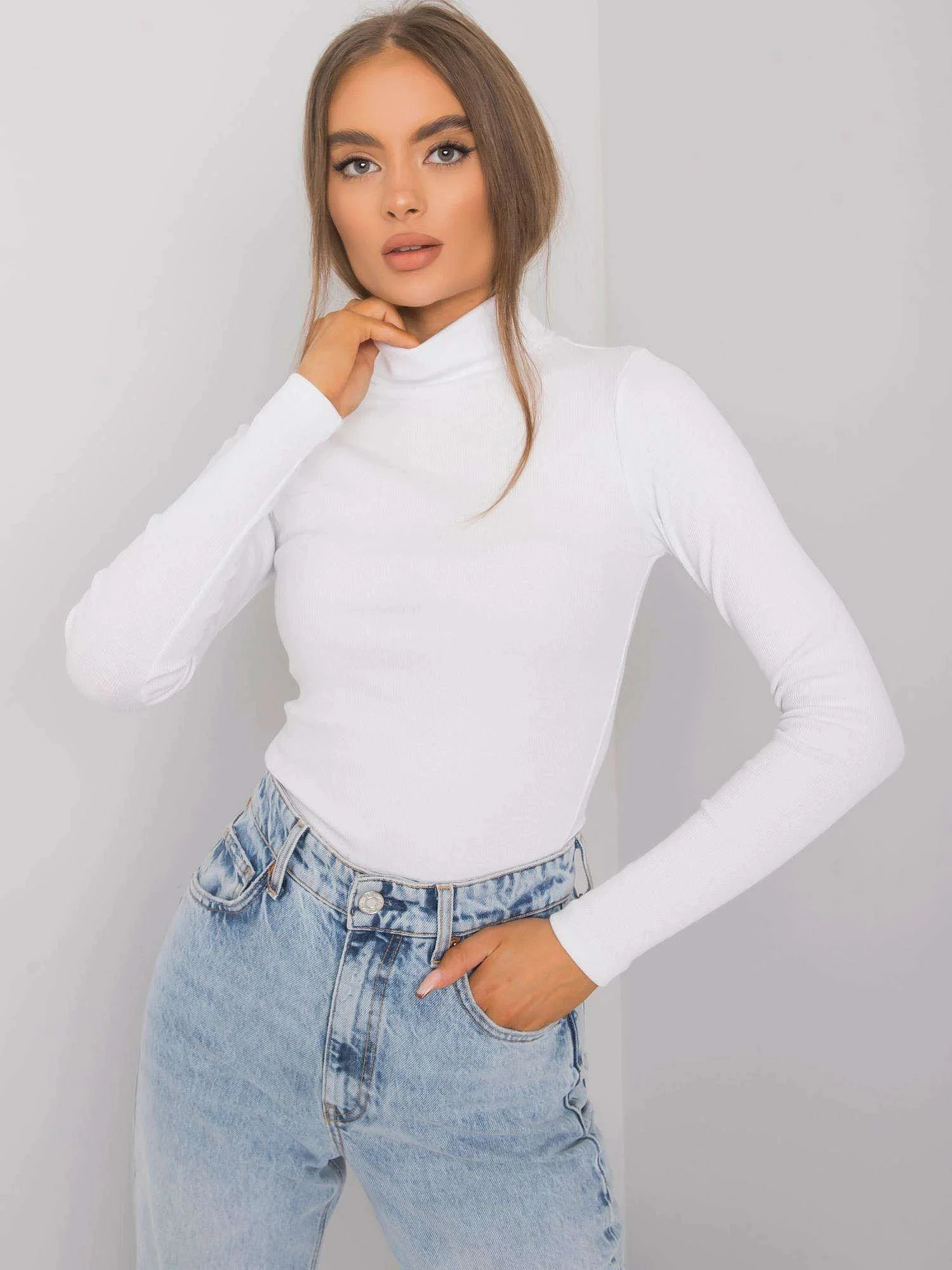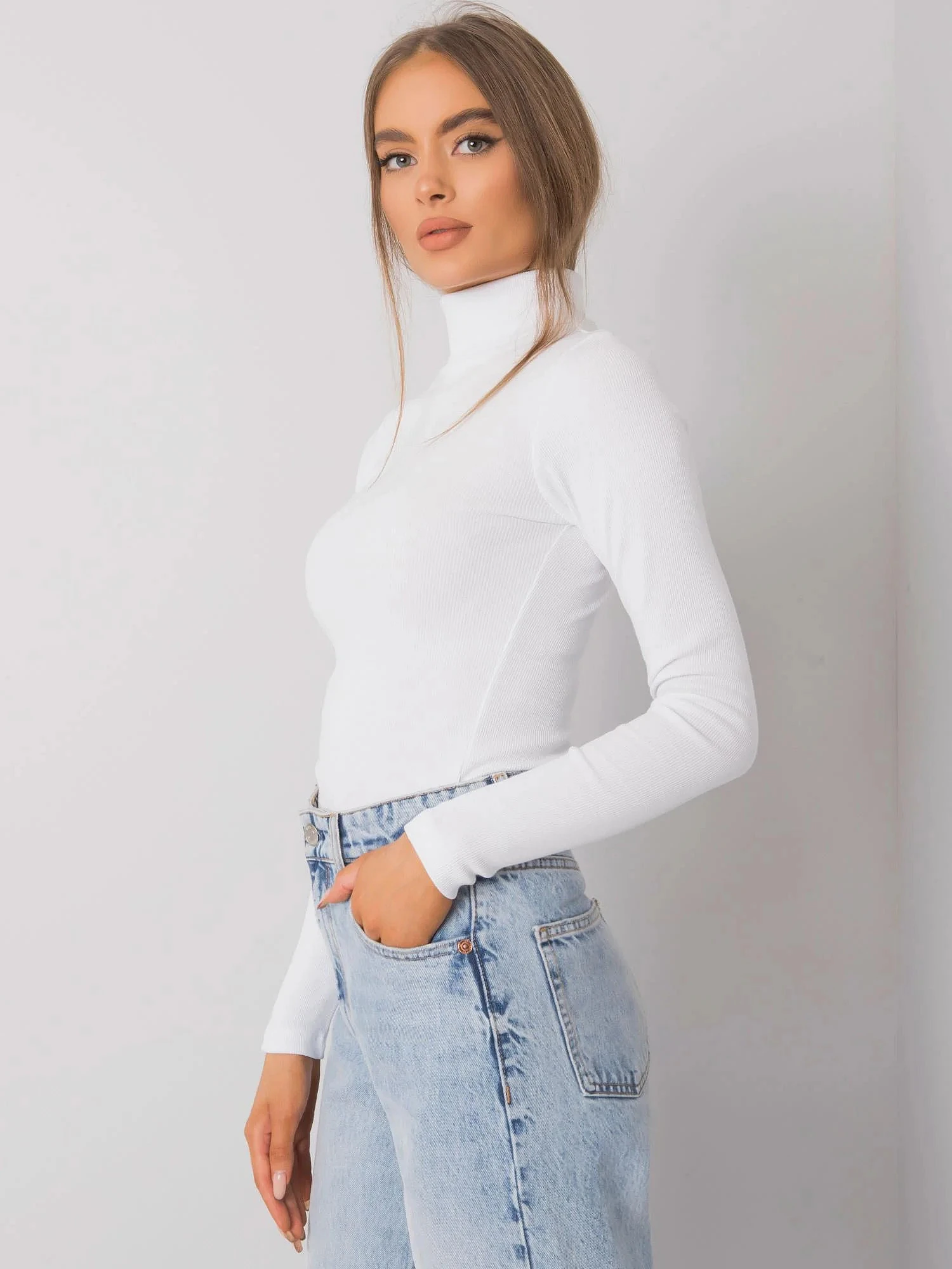 RUE PARIS Bílý žebrovaný rolák pro ženy.