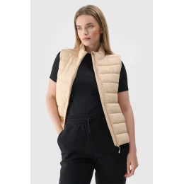 Dámský péřový vestník s límcem má lehkou konstrukci, díky čemuž ho lze nosit jak při každodenních, tak sportovních aktivitách během teplejších dnů v přechodném období. Jeho nízká hmotnost znamená, že během pohybu nepředstavuje žádnou další zátěž, a zároveň je efektivní izolační vrstvou, zejména pod voděodolnou membránou. Nejen, že chrání před chladem, ale také se skvěle hodí jako prvek vrstveného oblečení. Snadno se skládá a ukládá. Má přiléhavý slim střih, který se těsně přizpůsobuje tělu a standardní délku sahající po linii boků. Hydrofobní impregnace pokrývá vnější vrstvu materiálu a chrání ji před absorpcí vody. Tato vrstva způsobuje, že se vlhkost kondenzuje na povrchu tkaniny nebo pleteniny, odkud volně stéká. Krk chrání nízký límec. Po bocích se nacházejí 2 otevřené kapsy. Dámský péřový vestník se zapíná na jednosměrný hlavní zip s vnitřním větruodolným klopem, který omezuje pronikání chladu do vnitřku bundy. Spodní část bez regulace. Hlavní materiál: 100% polyamid Podšívka: 100% polyamid Výplň: 100% polyester