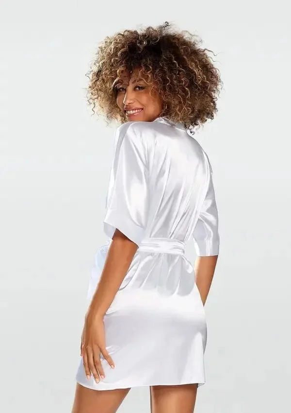 Exkluzivní negližé - župan, vázaný v pase. Hladký, elegantní, ženský. Rukávy kimonového typu až po loket. Stojí to za to.