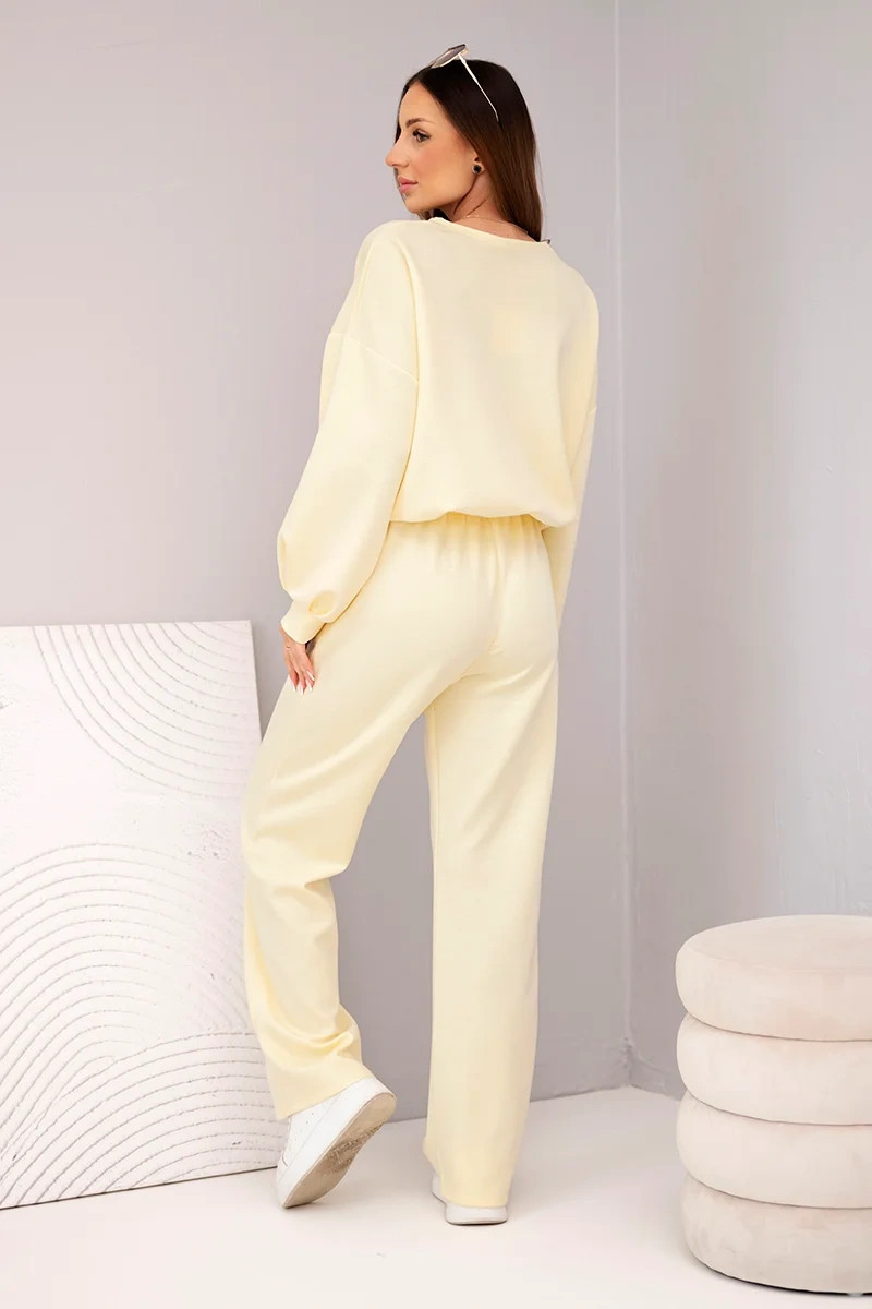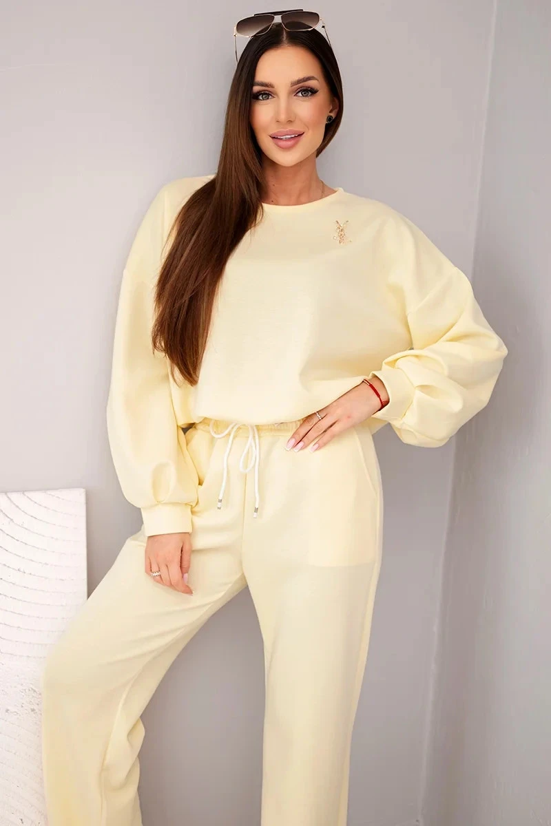 Dámský set mikina s broží a kalhoty s nohavicí žlutý model 21921250 - K-Fashion