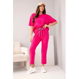 Dámský set viskózový máslo s krátkým rukávem a kalhotami s ohrnutým lemem fuchsie