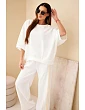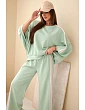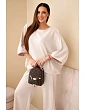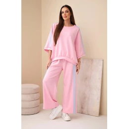Dámský set viskózový máslový s širokou nohavicí a volnou blůzou světle růžový