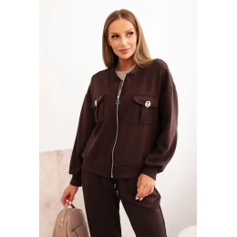 Dámský set z viskózy s rozepínací mikinou a kalhotami hnědý