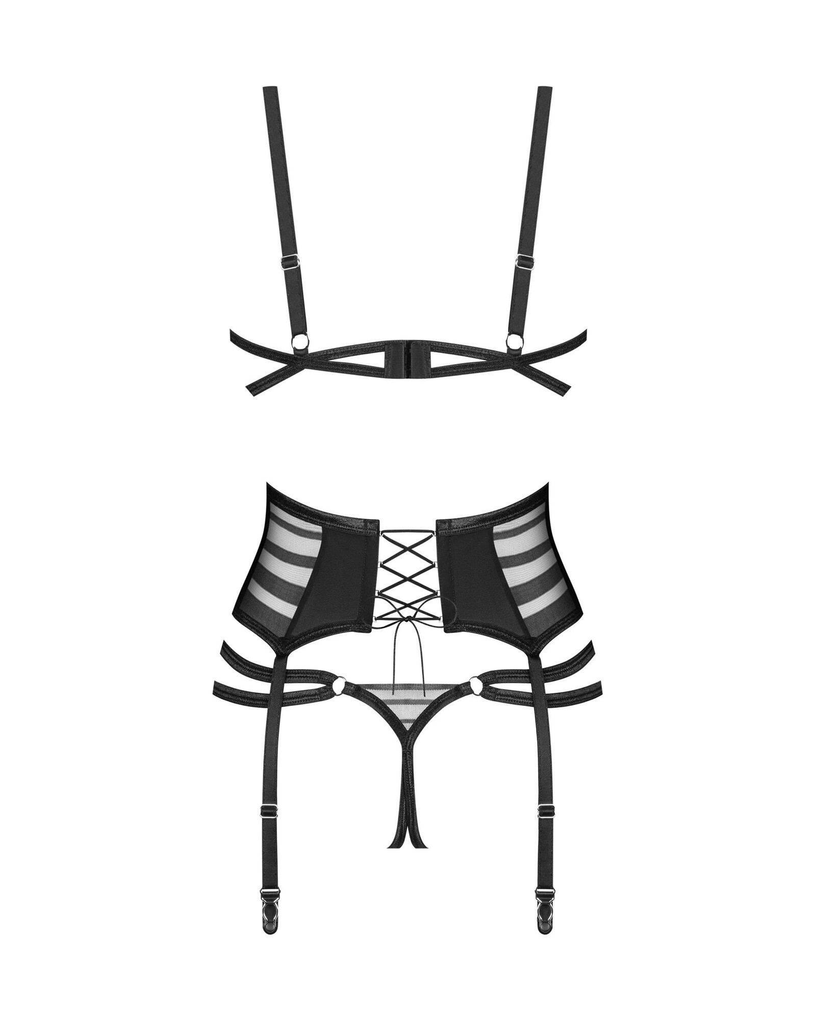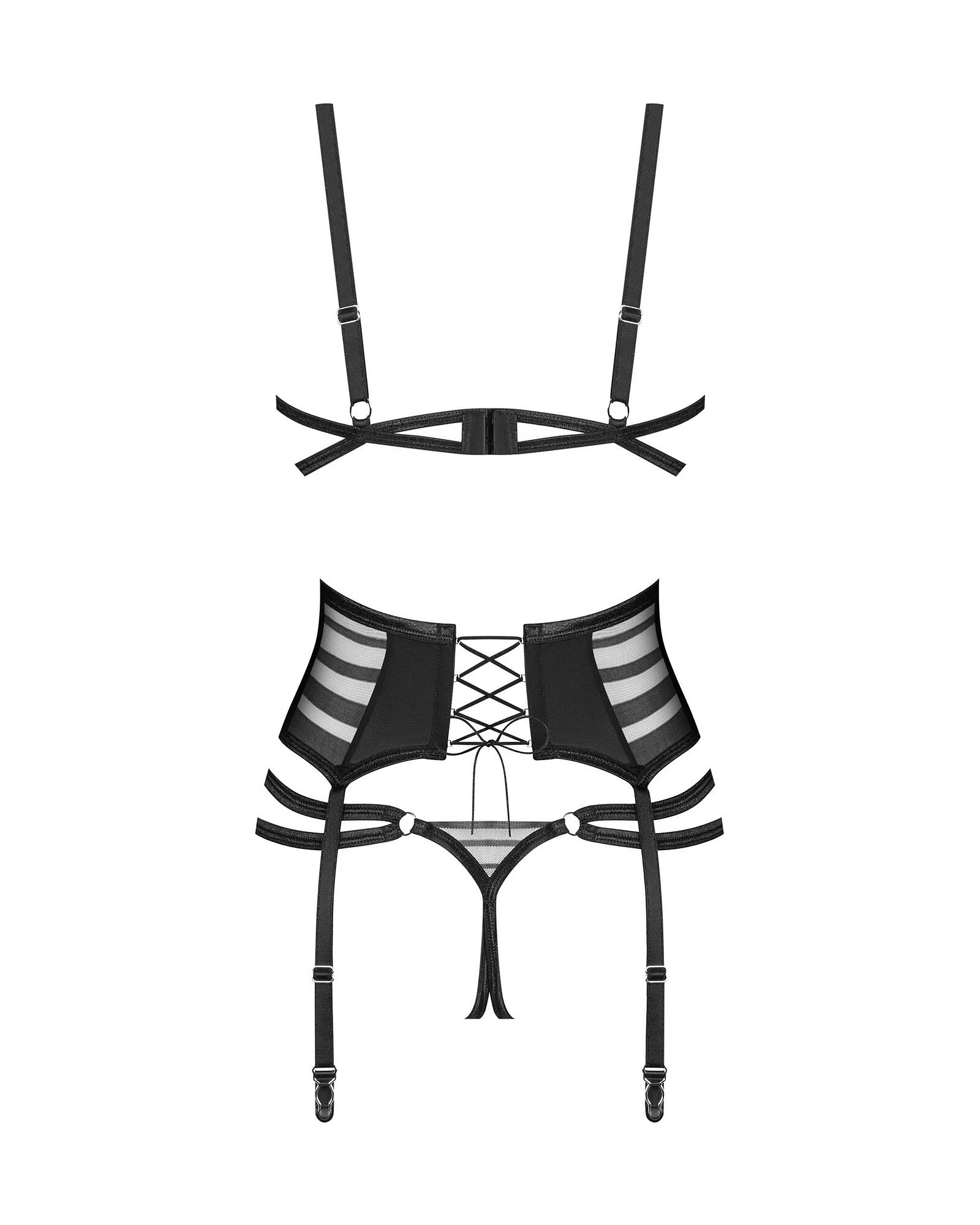 Dámský sexy set Lune Bellis 3-Pcs Crotchless černý - Obsessive