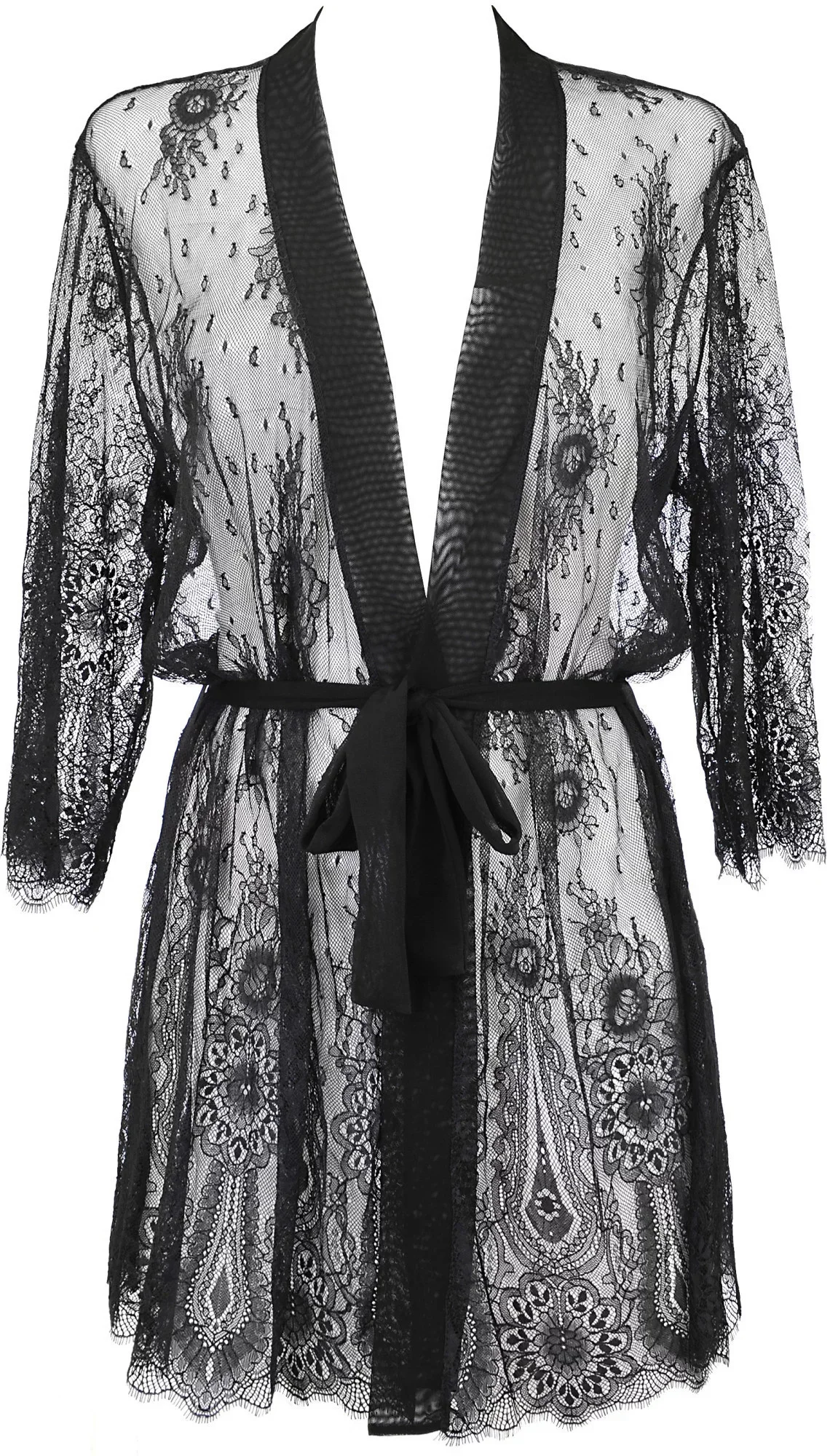 Zahalte se do lehkosti černého prádla vybraného z těch nejdražších a nej krajek. Toto úžasné a luxusní negližé je dokonalým nápadem na dárek, ať už pro někoho blízkého, nebo pro sebe! Zvýrazní krásu každé soupravy spodního prádla a rychle se stane nepostradatelnou "jedničkou" ve vašem šatníku. Klasické, univerzální a smyslné! Rukáv 3, negližé se saténovým páskem.