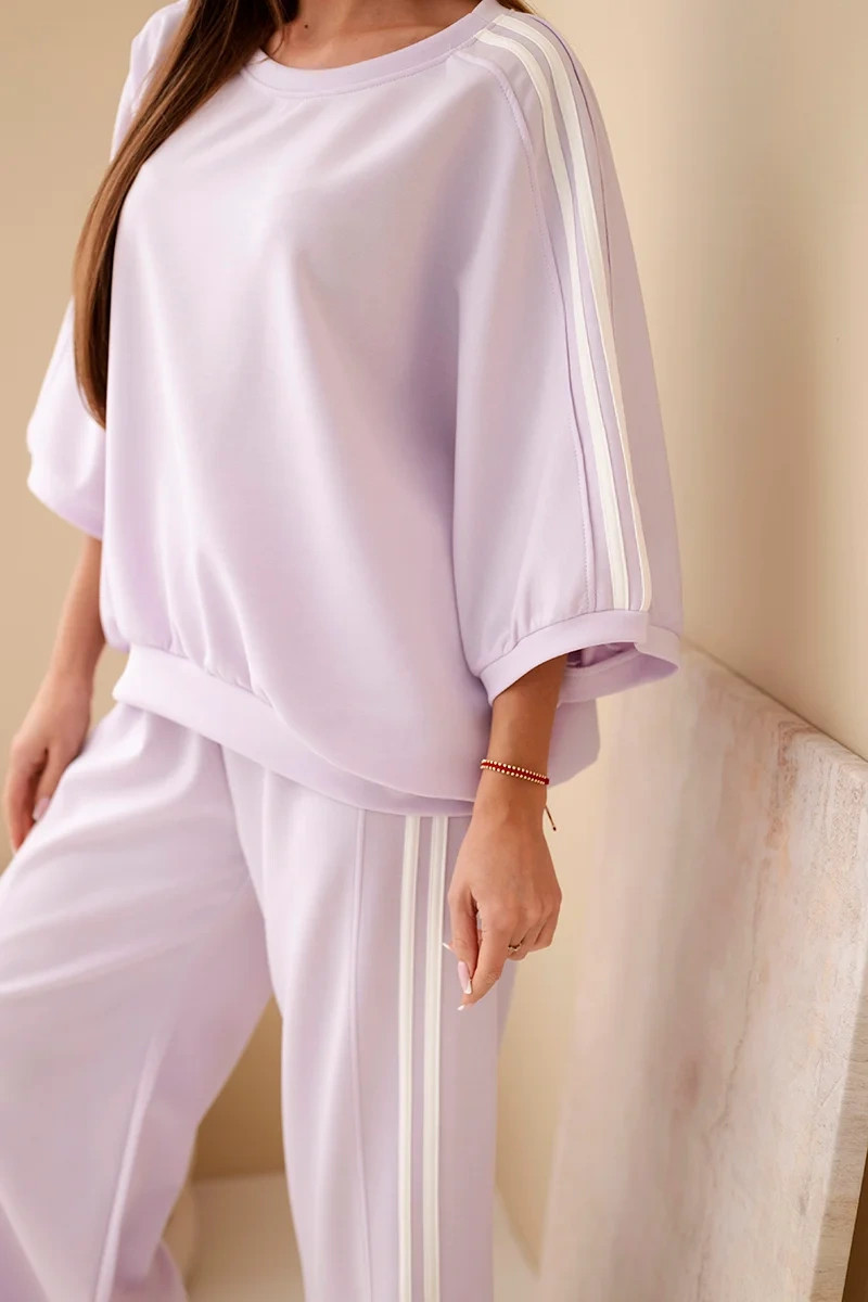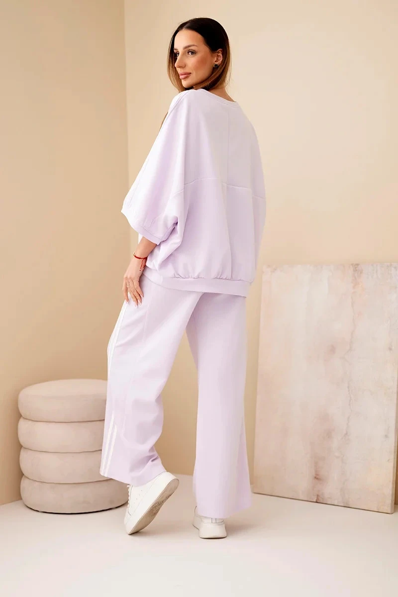 Dámský souprava viskózová máslo s širokou nohavicí a volnou blůzou světle fialový