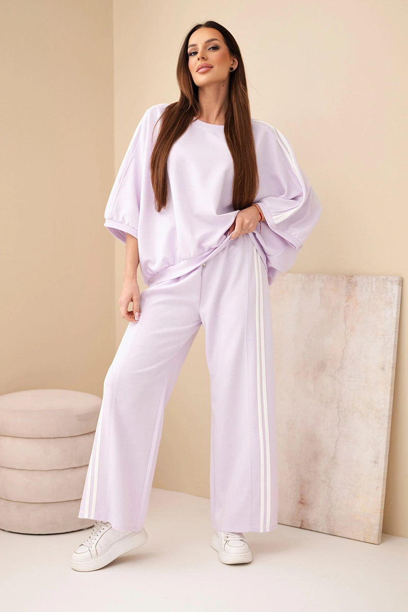 Dámský souprava viskózová máslo s širokou nohavicí a volnou blůzou světle fialový