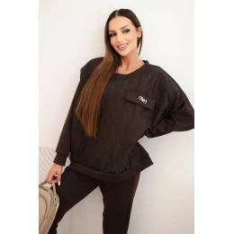 Dámský souprava z viskózy s prošívanou mikinou a kalhotami hnědý