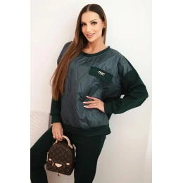 Dámský souprava z viskózy s prošívanou mikinou a kalhotami tmavě zelený