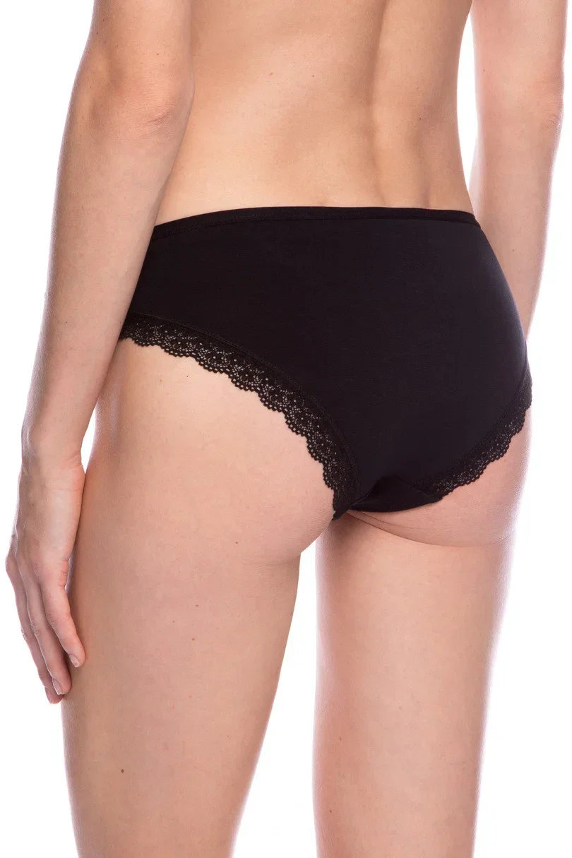 Dámské bavlněné kalhotky. 2 kusy v balení: jedny hladké, druhé s potiskem, vzadu zakončené jemnou krajkou.