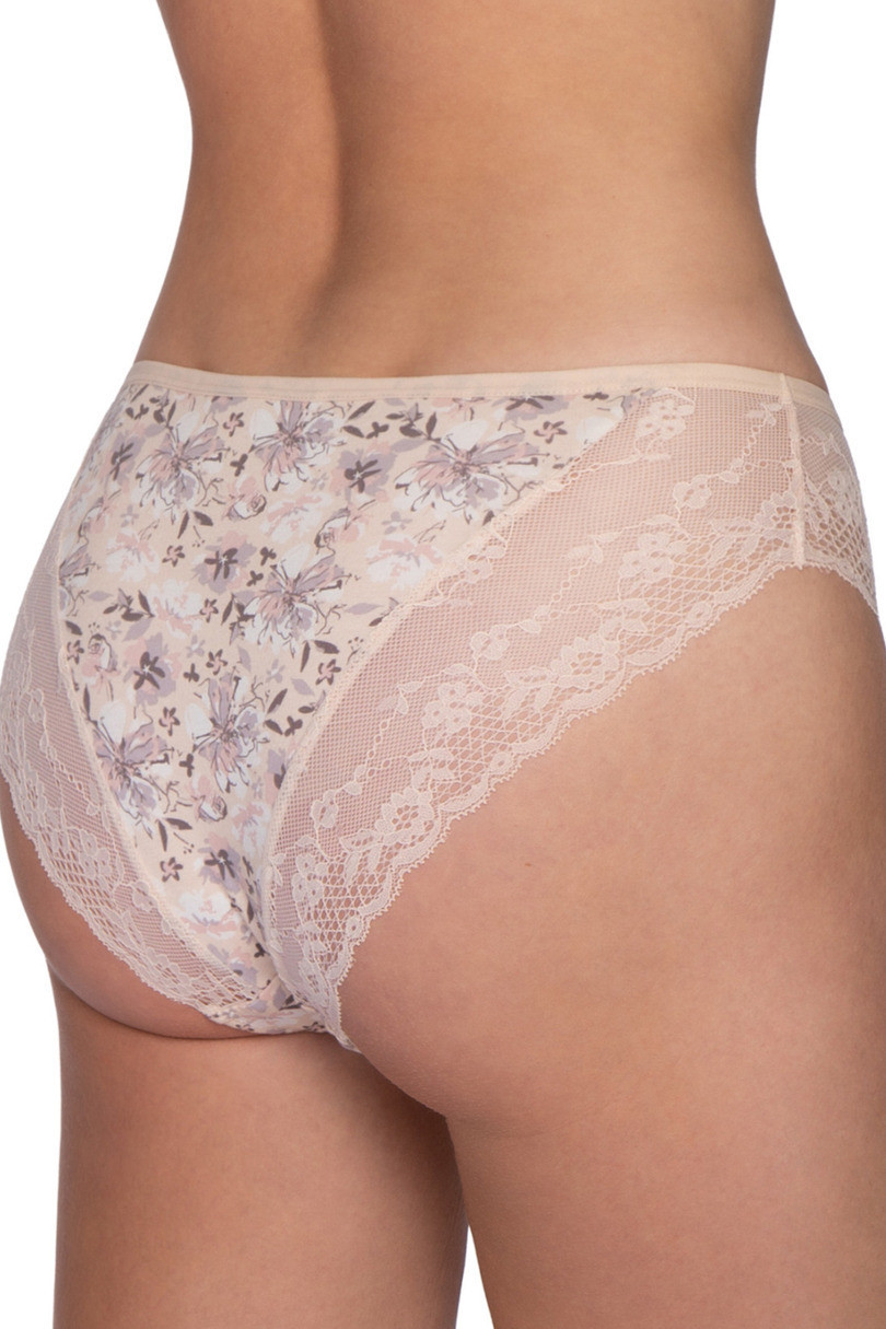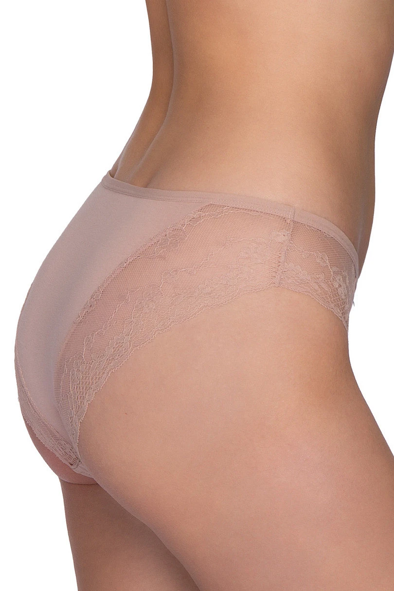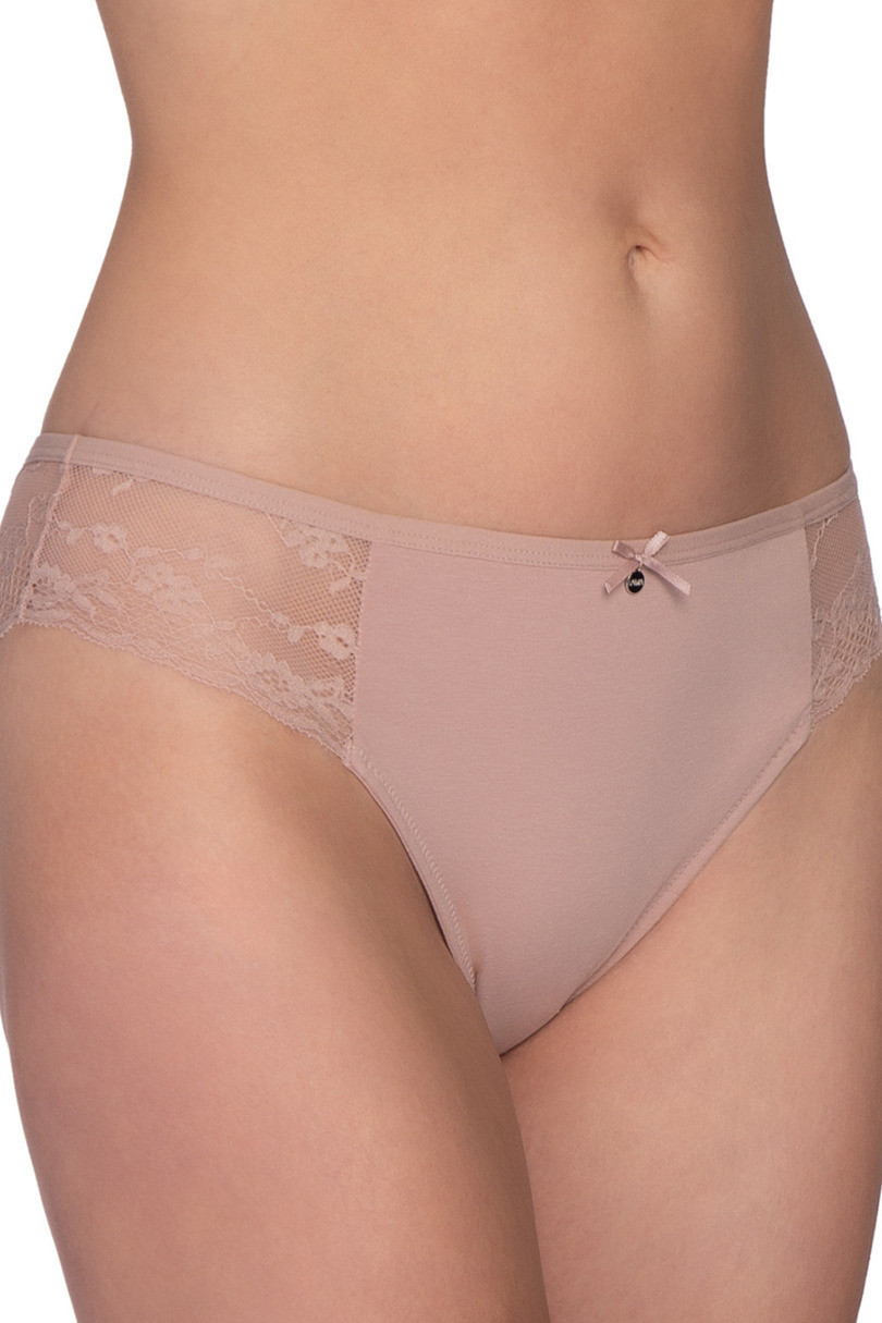 Kalhotky jsou vyrobeny z měkké, na dotek příjemné tkaniny, která se dokonale přizpůsobí postavě. Boky zdobí jemná ažurová krajka, která podtrhuje ženský styl a dodává prádlu jedinečný vzhled.