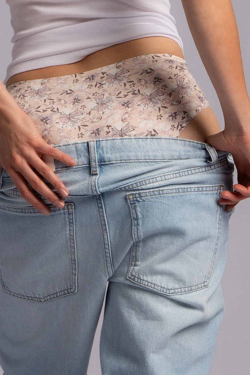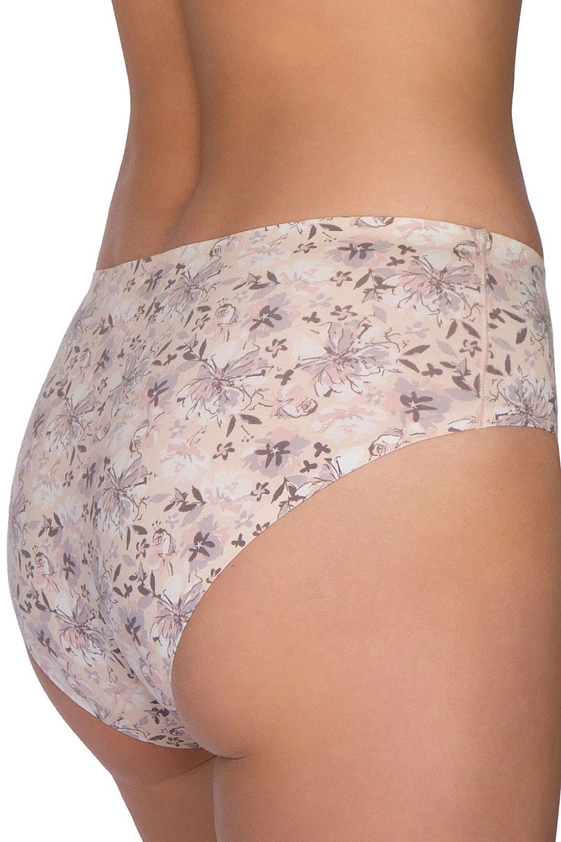 Stylové a pohodlné kalhotky navržené pro každodenní pohodlí. K dostání ve dvou verzích - s jemným květinovým potiskem v tlumených barvách a v minimalistické hladké verzi v elegantním nude odstínu. Díky nízkému střihu a modernímu střihu prádlo dokonale přiléhá k tělu a zdůrazňuje přirozené tvary bez jakéhokoli tlaku. Díky použití měkkého, elastického materiálu jsou kalhotky příjemné na dotek a pod oblečením téměř neviditelné, což z nich činí ideální volbu pro každodenní nošení i pod vypasované oblečení.