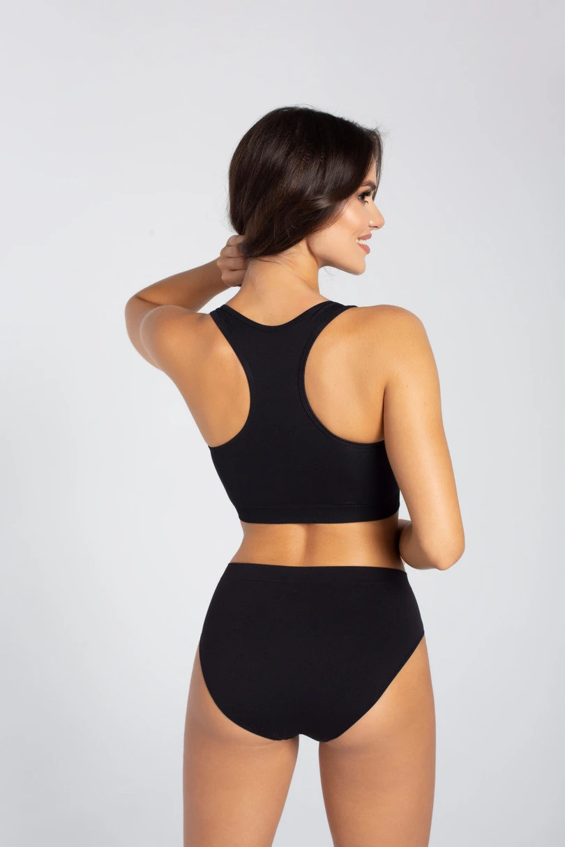 Dámský sportovní top s Boxerkyem a širokými ramínky, ušitý z prodyšného mikrovlákna, bez bočních švů. Zajišťuje pohodlí a ideálně Podvazkový pásuje na tělo.