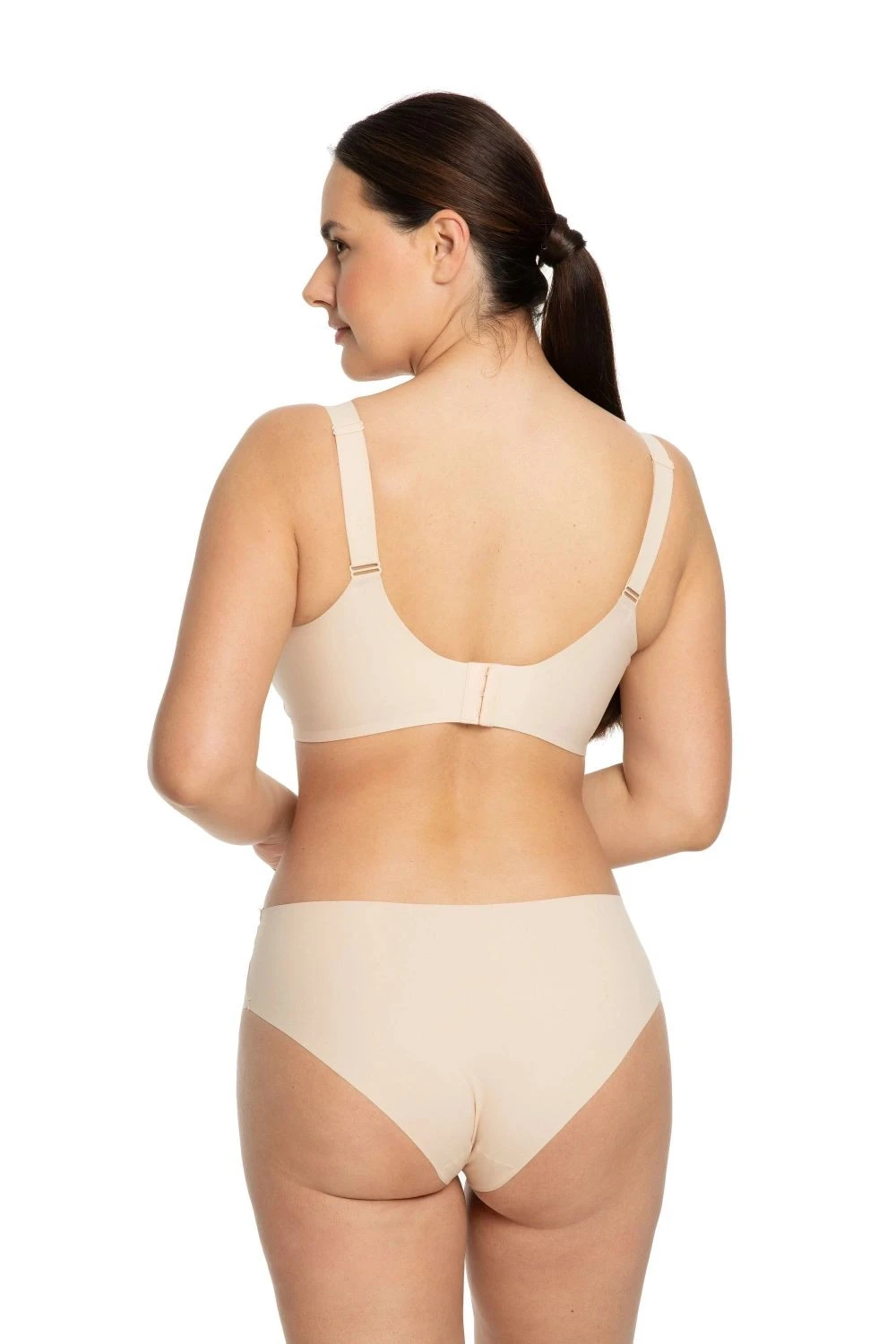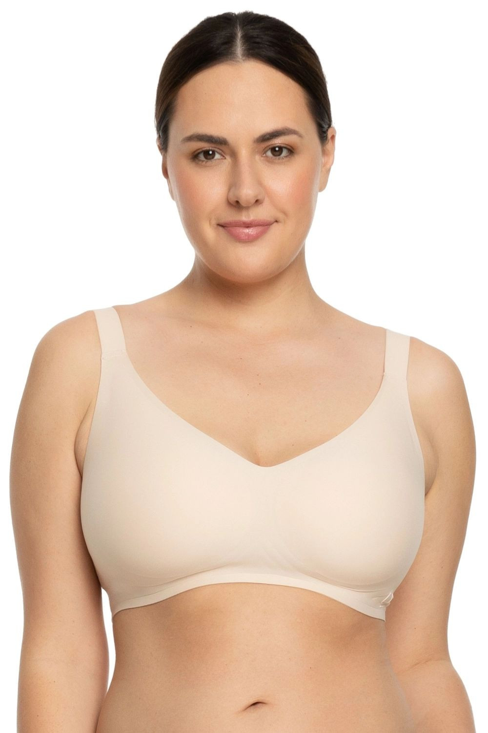 Dámský sportovní top Jelly bra comfort beige JULIMEX - béžová barva - z prodyšného materiálu - bez kostic - 3D Jelly Fit System - elastický pásek pro zajištění vložky proti posunutí - široká regulovatelná ramínka - třířadé zapínání na háčky