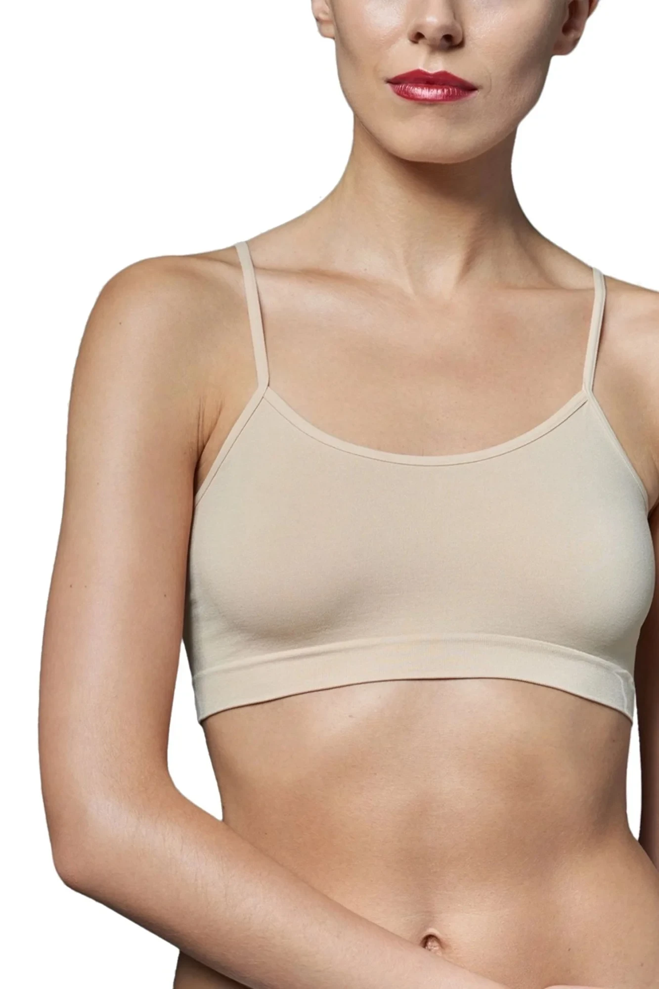 Dámský sportovní top 3k611 beige GATTA - tělová barva - jednoduchý střih - špagetová ramínka - pod oblečením není vidět