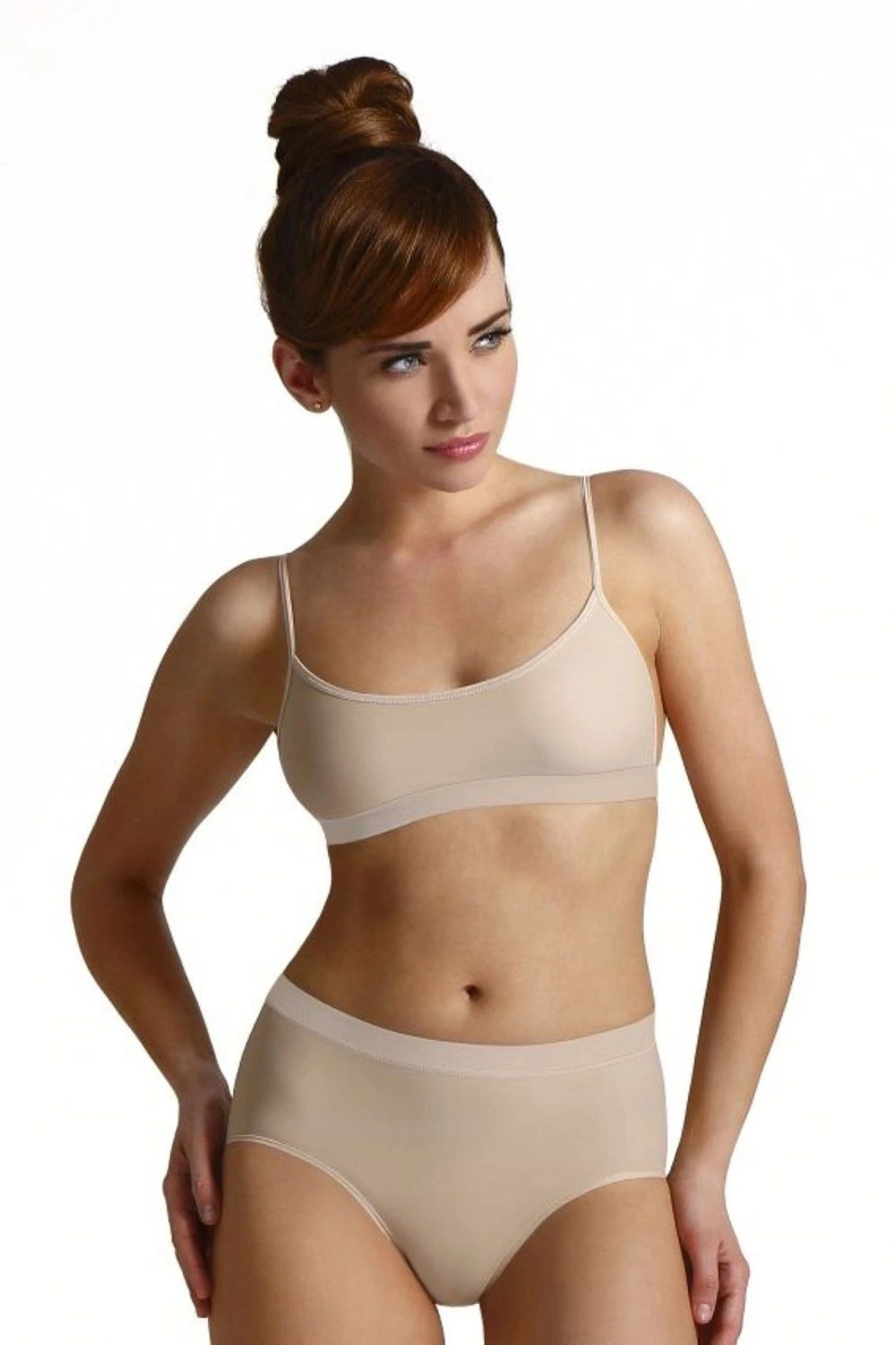 Dámský sportovní top Sally beige ELDAR - béžová barva - v obvodu všitá pružná guma - špagetová ramínka - odhalená záda - vnitřní část podprsenky podšitá jemným materiálem - jednoduchý designMateriálové složení: 95% viskóza + 5% elastan