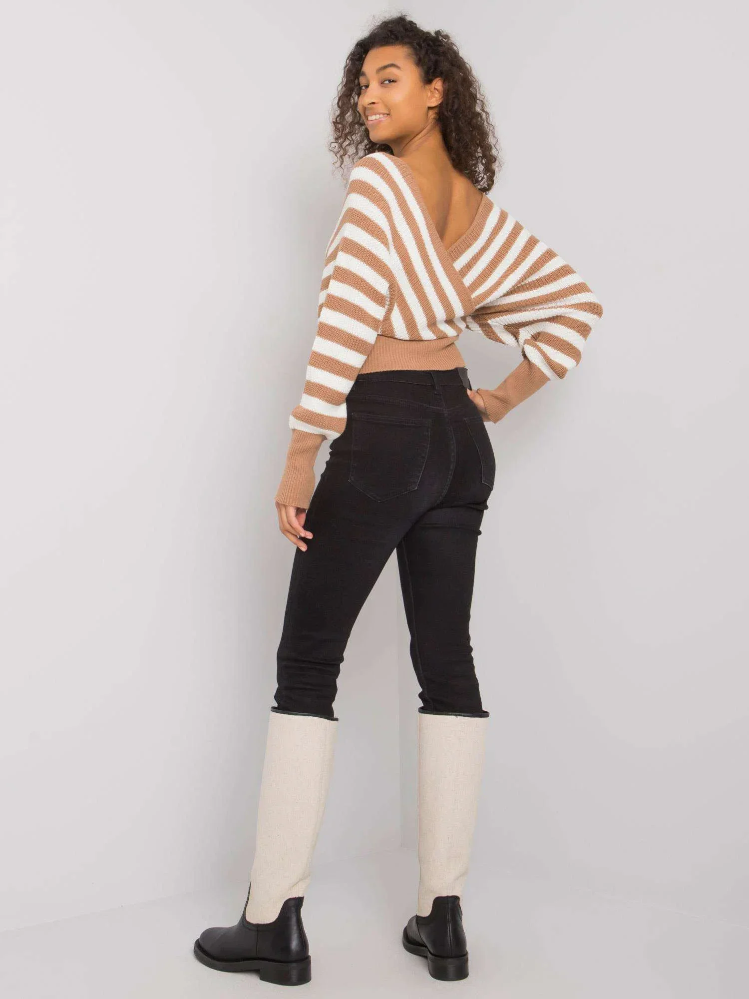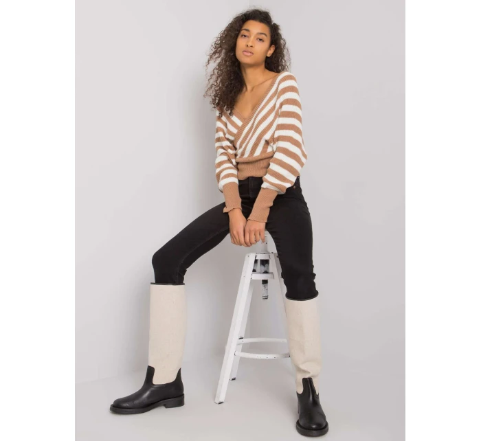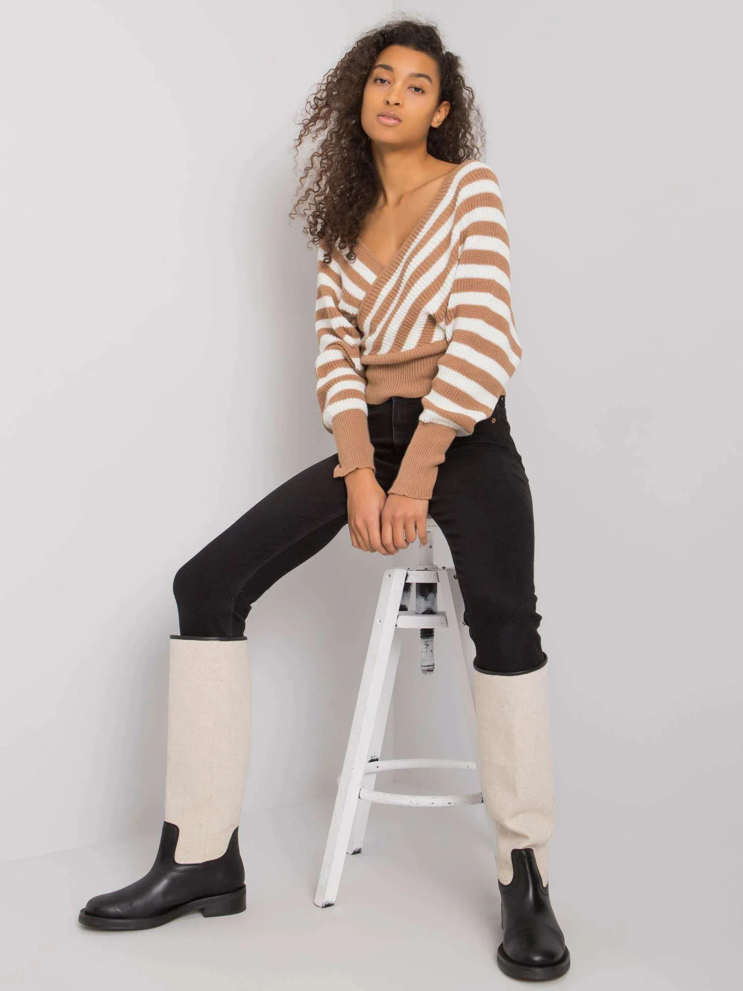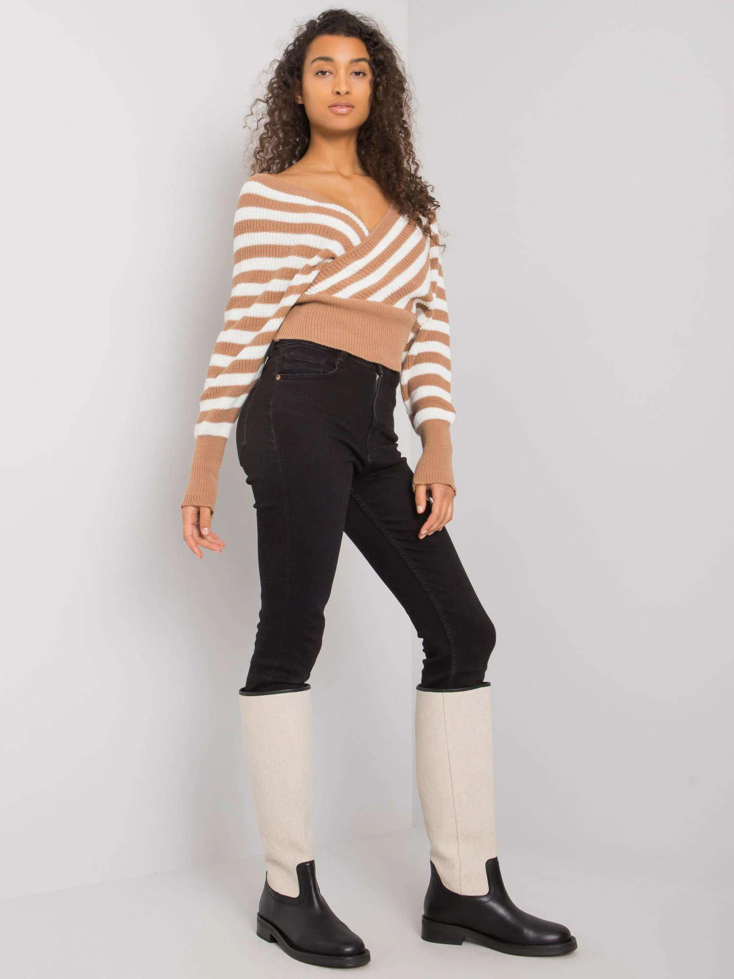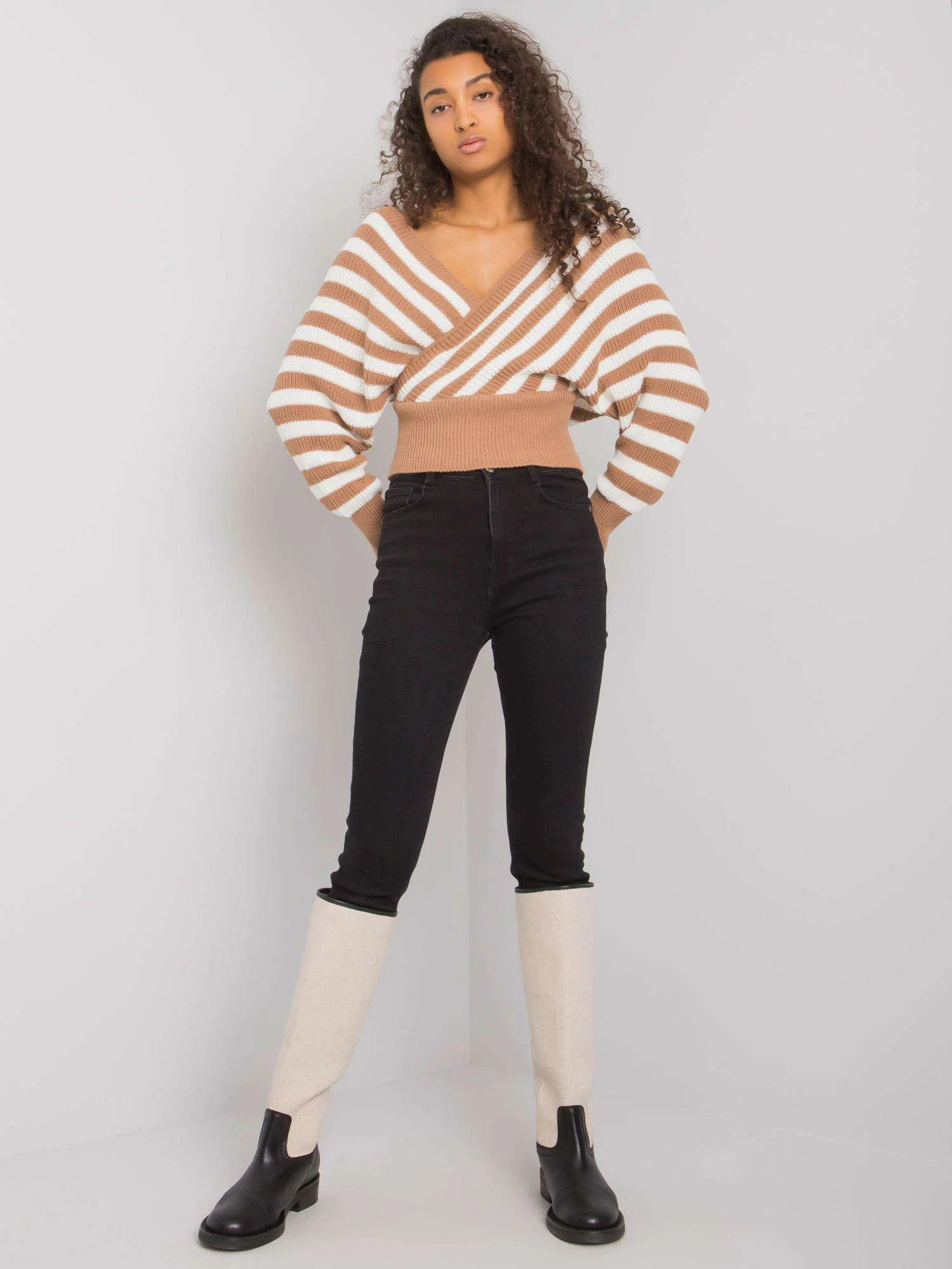 Wymiary swetra w rozmiarze one size mierzone na płasko: szerokość pod pachami - 44 cm, długość całkowita - 56 cm, długość rękawa - 55 cm