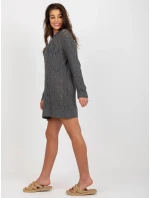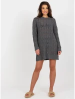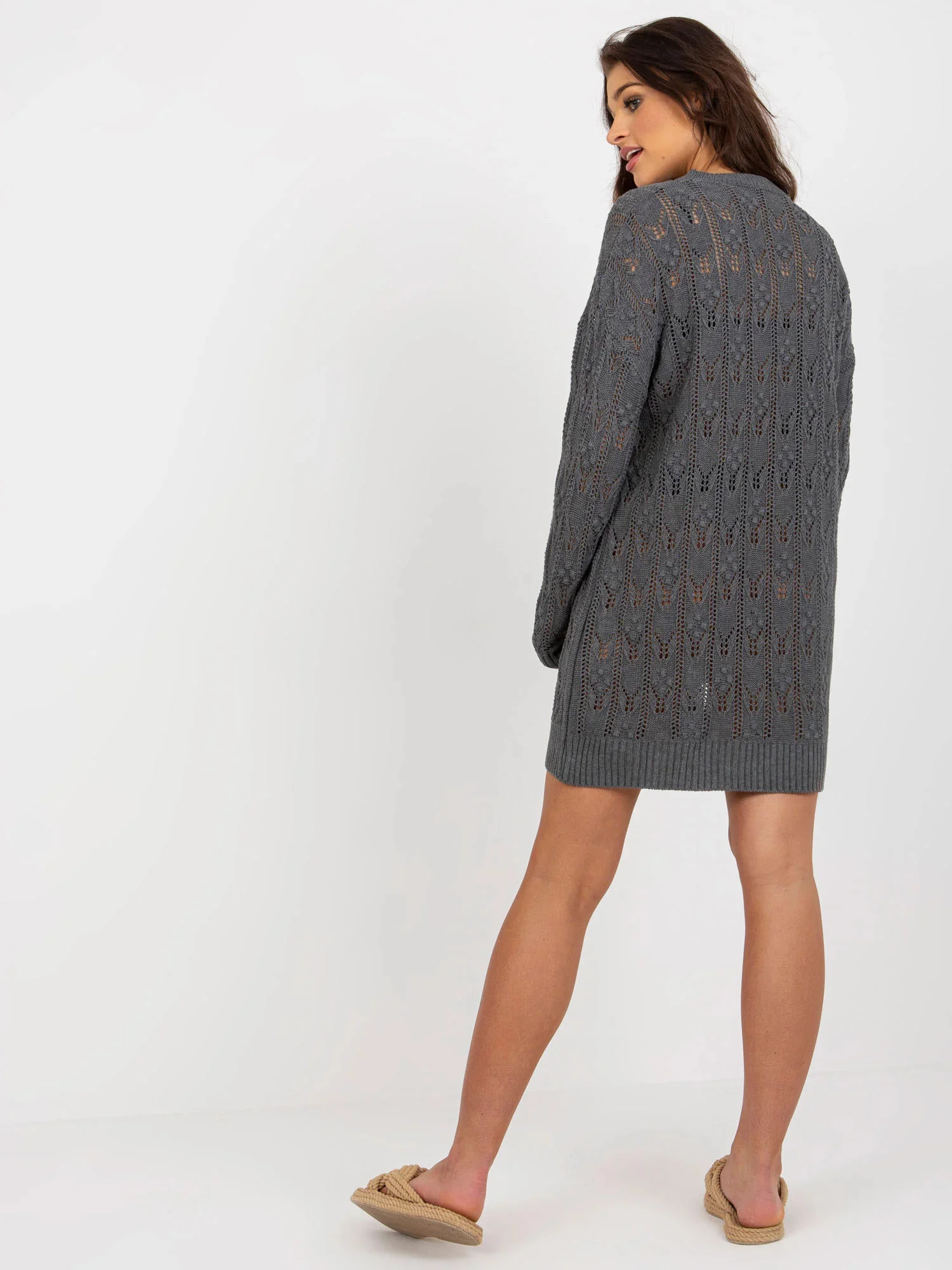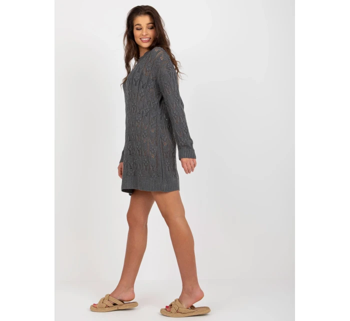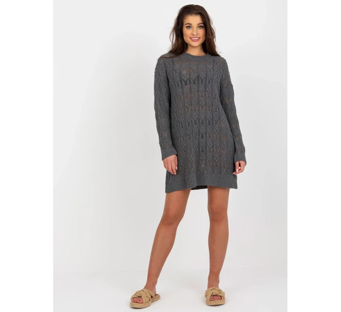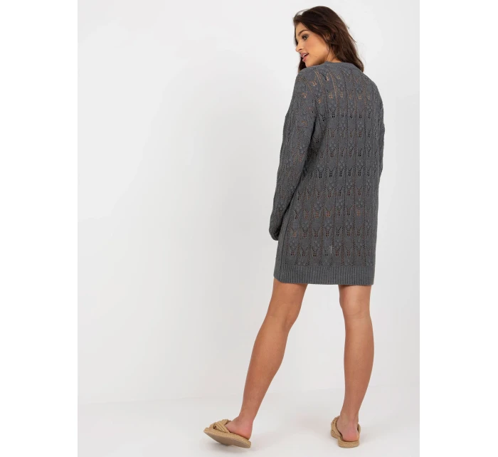 Tmavě šedé pletené šaty s prolamovaným vzorem .
