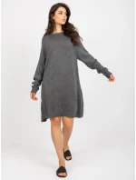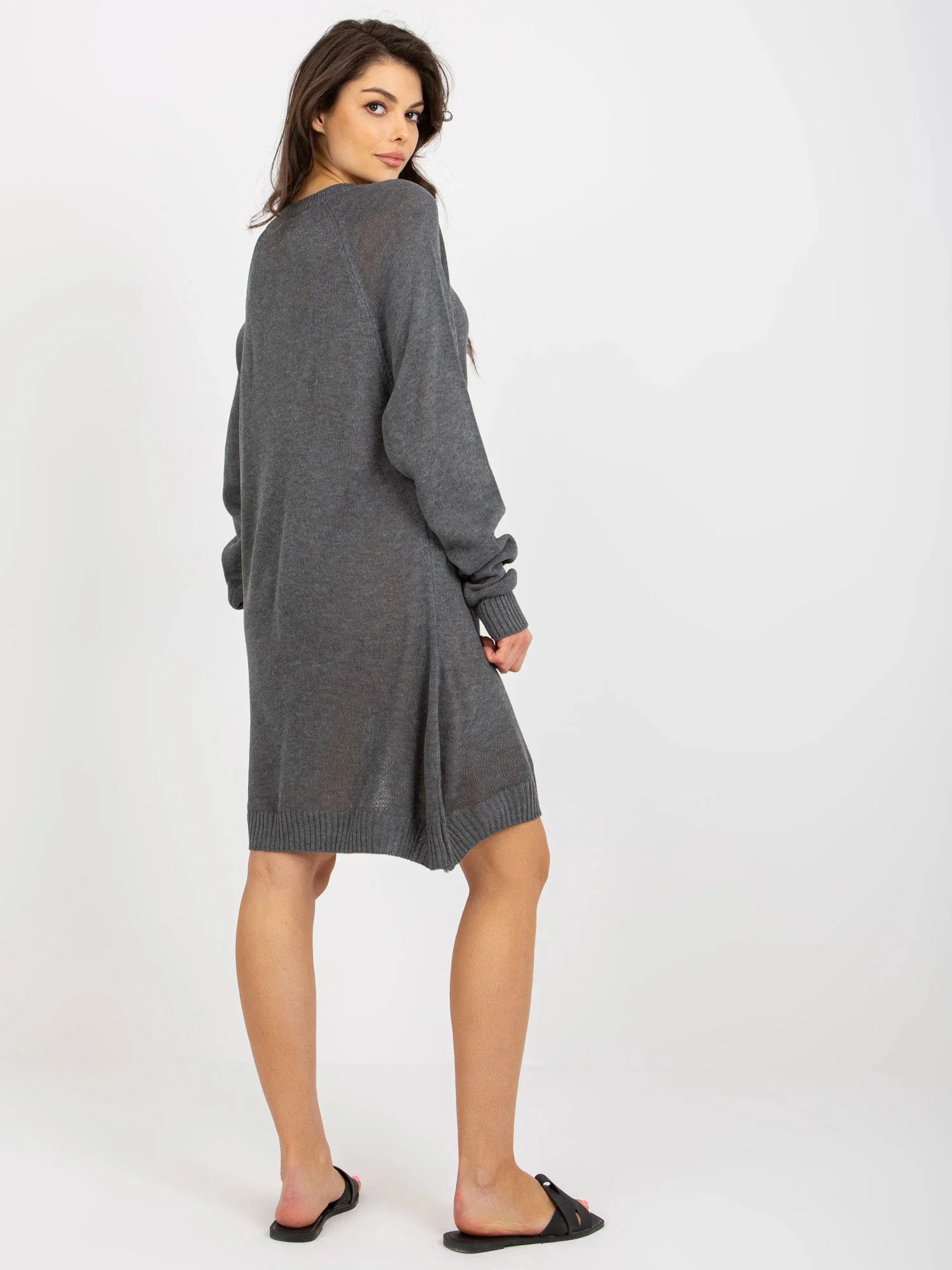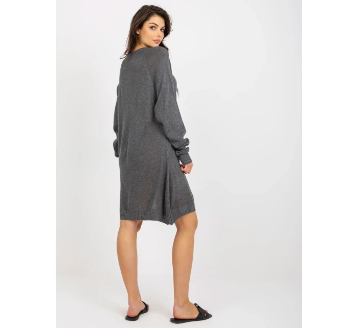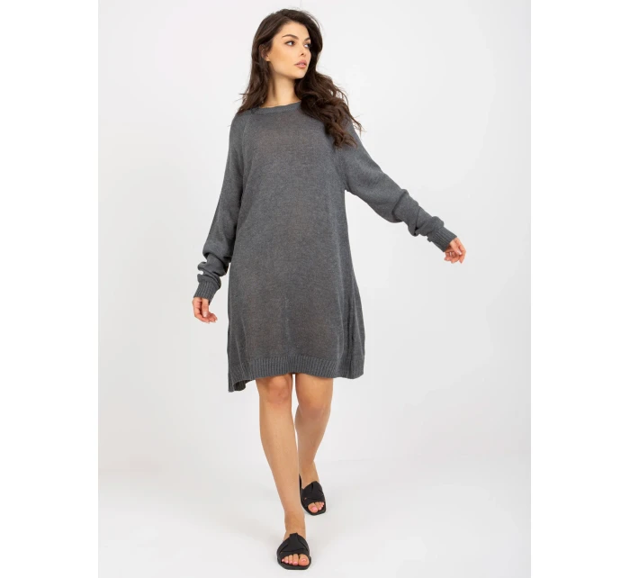 Tmavě šedé pletené šaty s dlouhým rukávem .