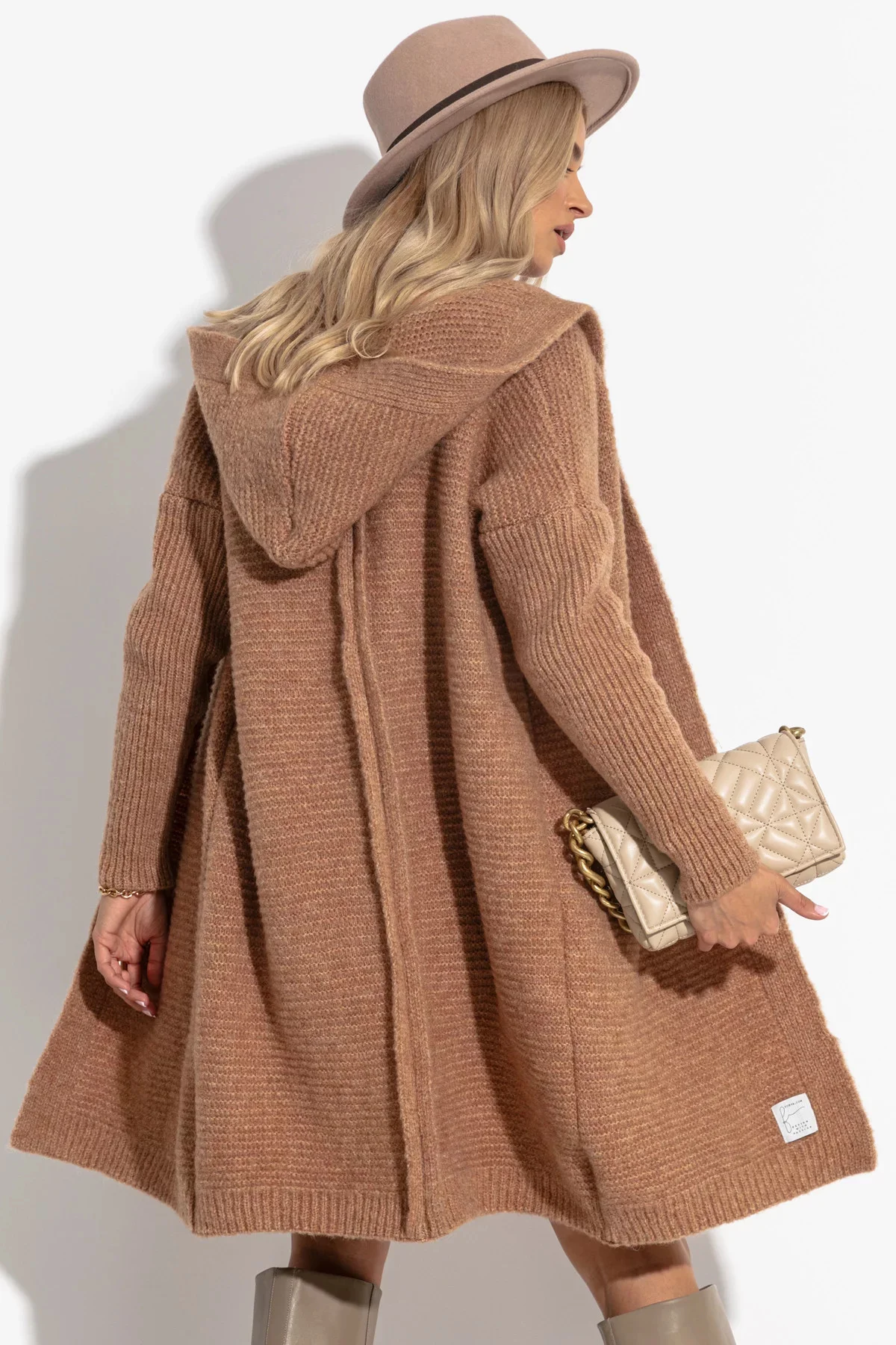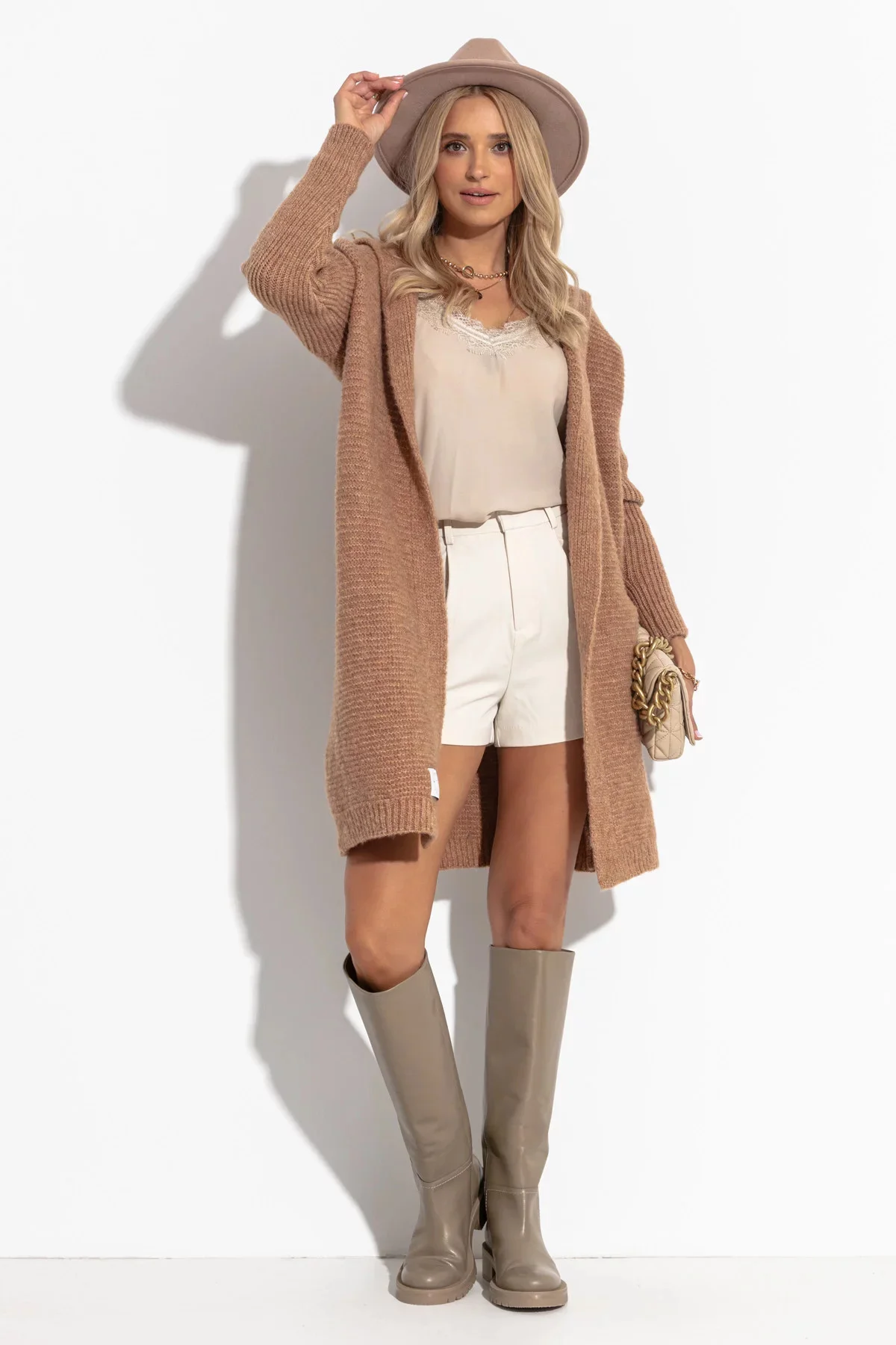 Produkt Dámský svetr Cardigan model 17748126 - Fobya prodáváme v těchto velikostech: 34/36a barvách karamelová5903707128129