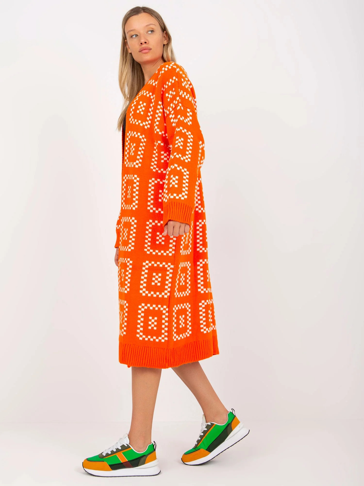 Oranžový volný vzorovaný svetr RUE PARIS .