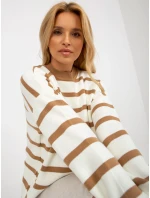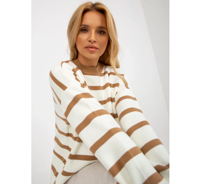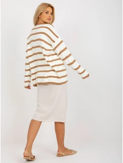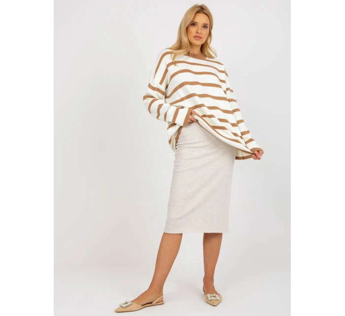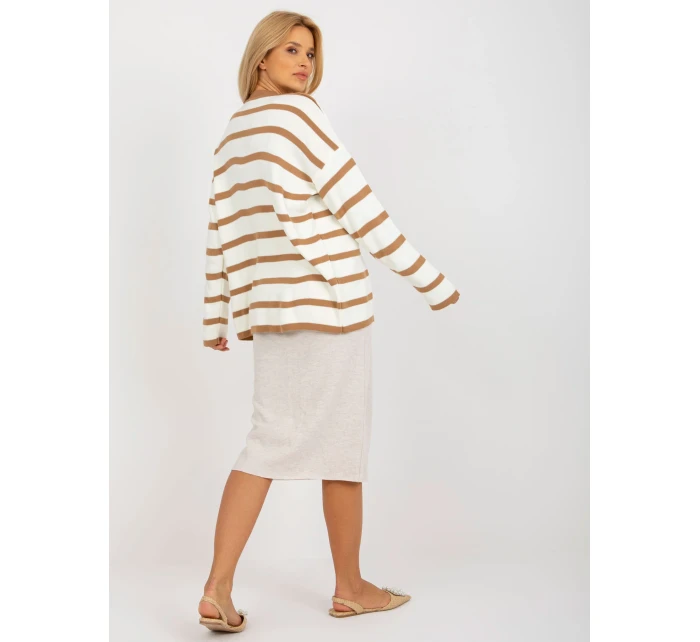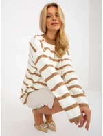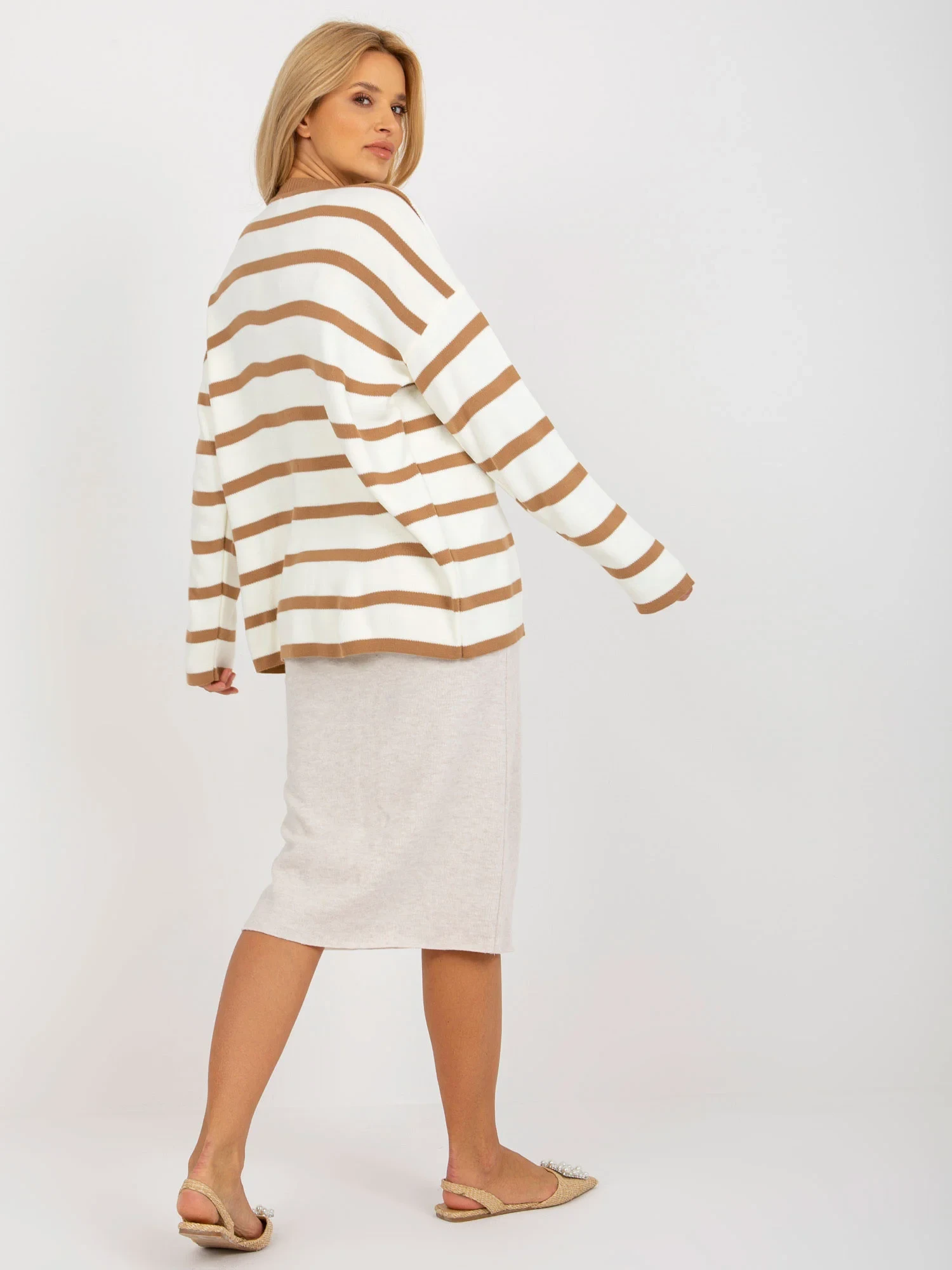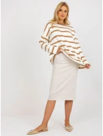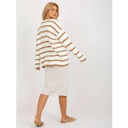 Světle zelený a ecru pruhovaný oversize svetr značky RUE PARIS .