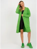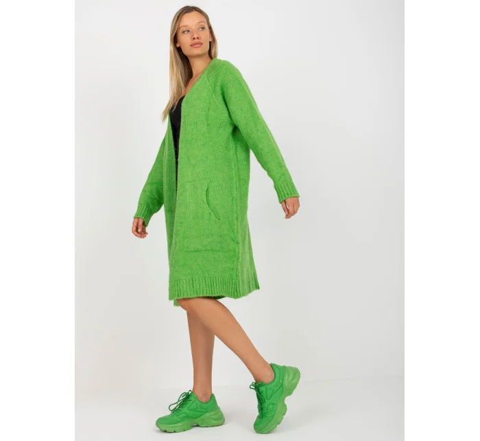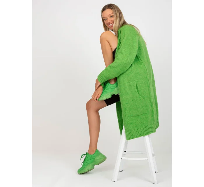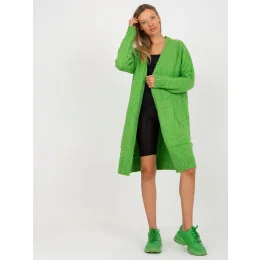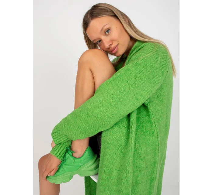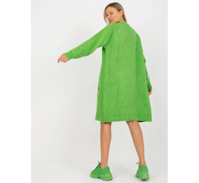 Světle zelený volný svetr bez knoflíků od značky RUE PARIS .
