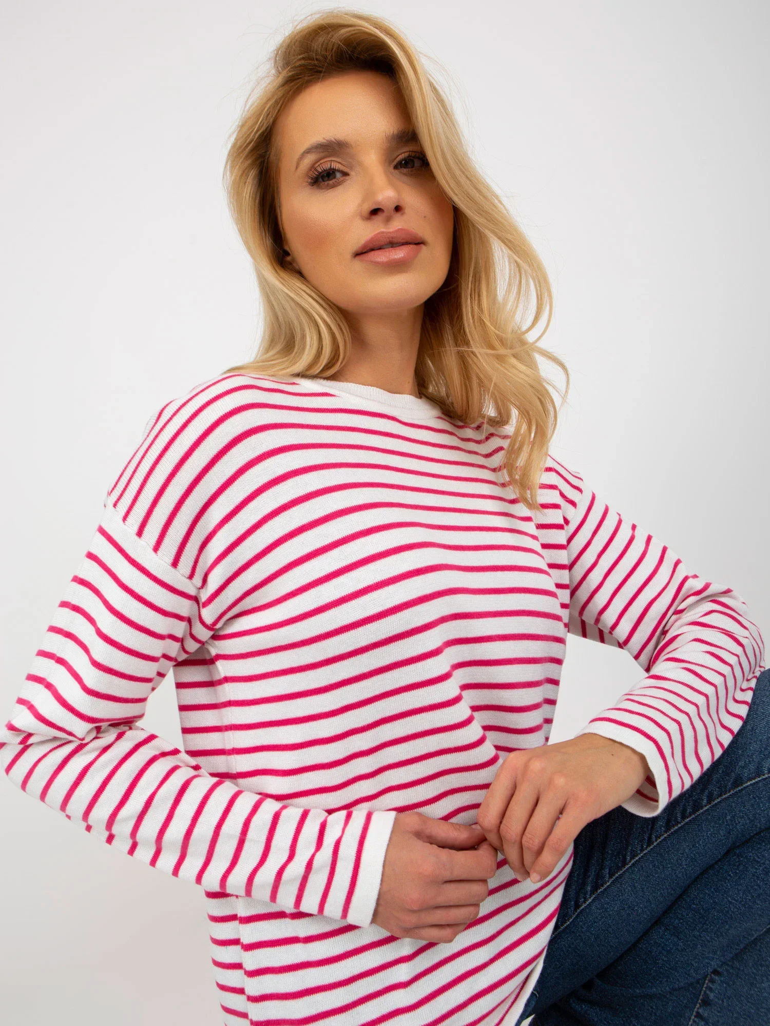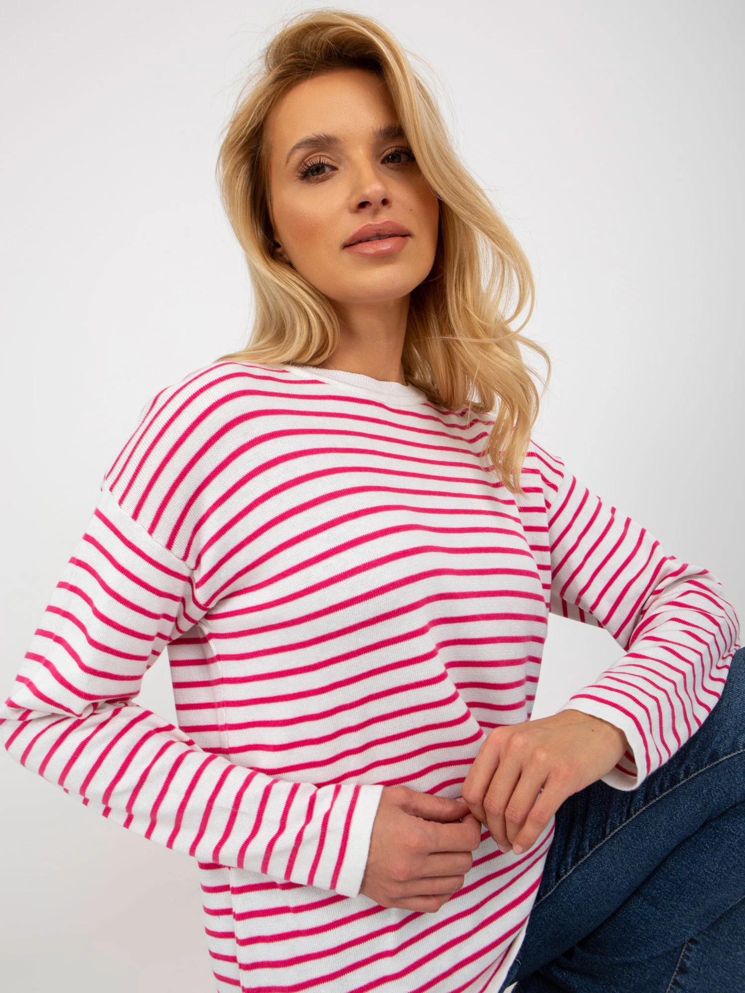 Klasický vlněný svetr s bílými a růžovými pruhy od značky RUE PARIS .