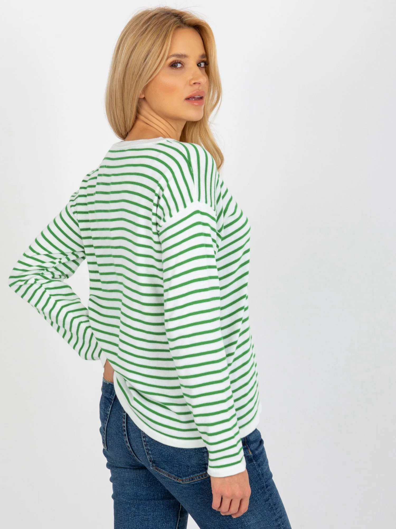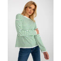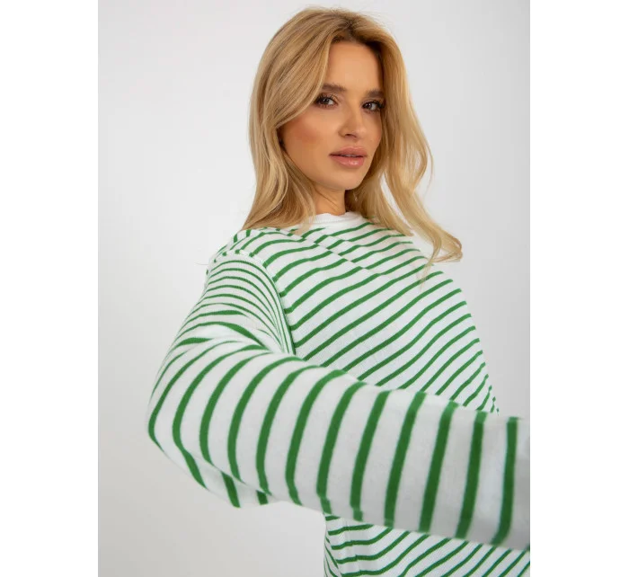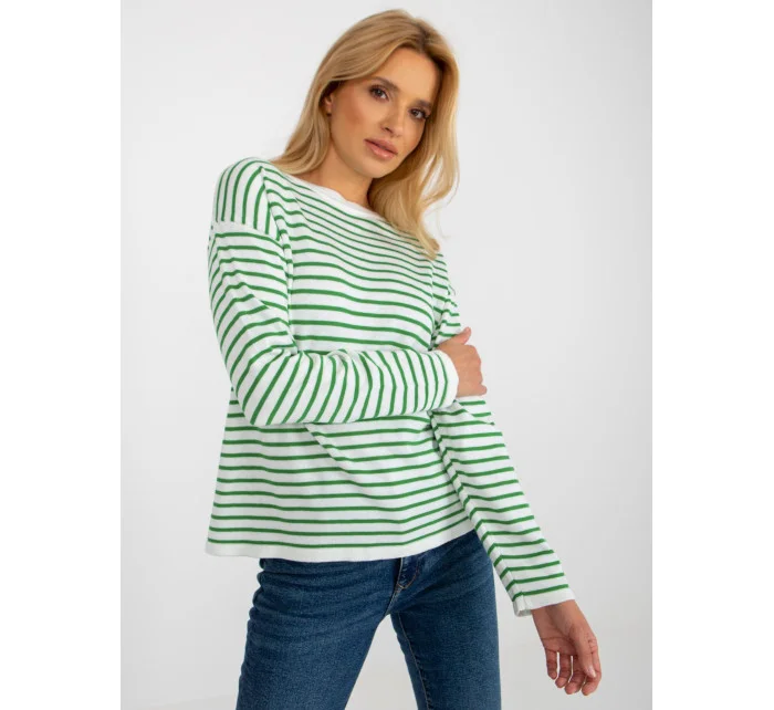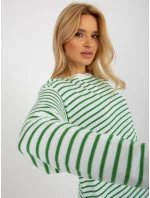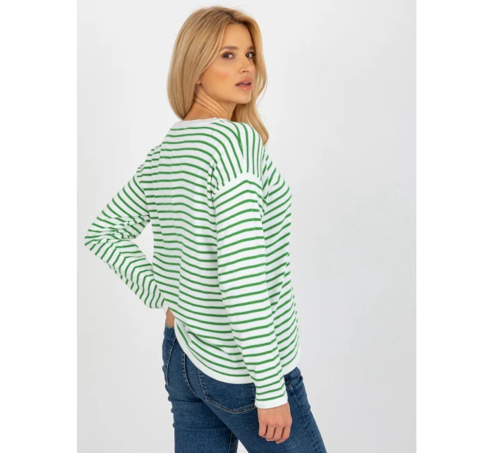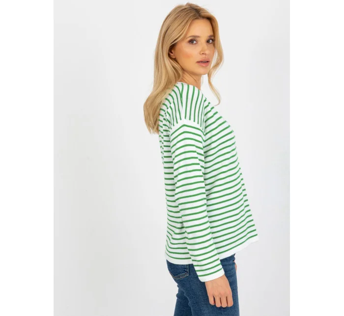 Dámský bílozelený pruhovaný klasický svetr RUE PARIS .