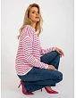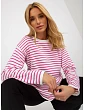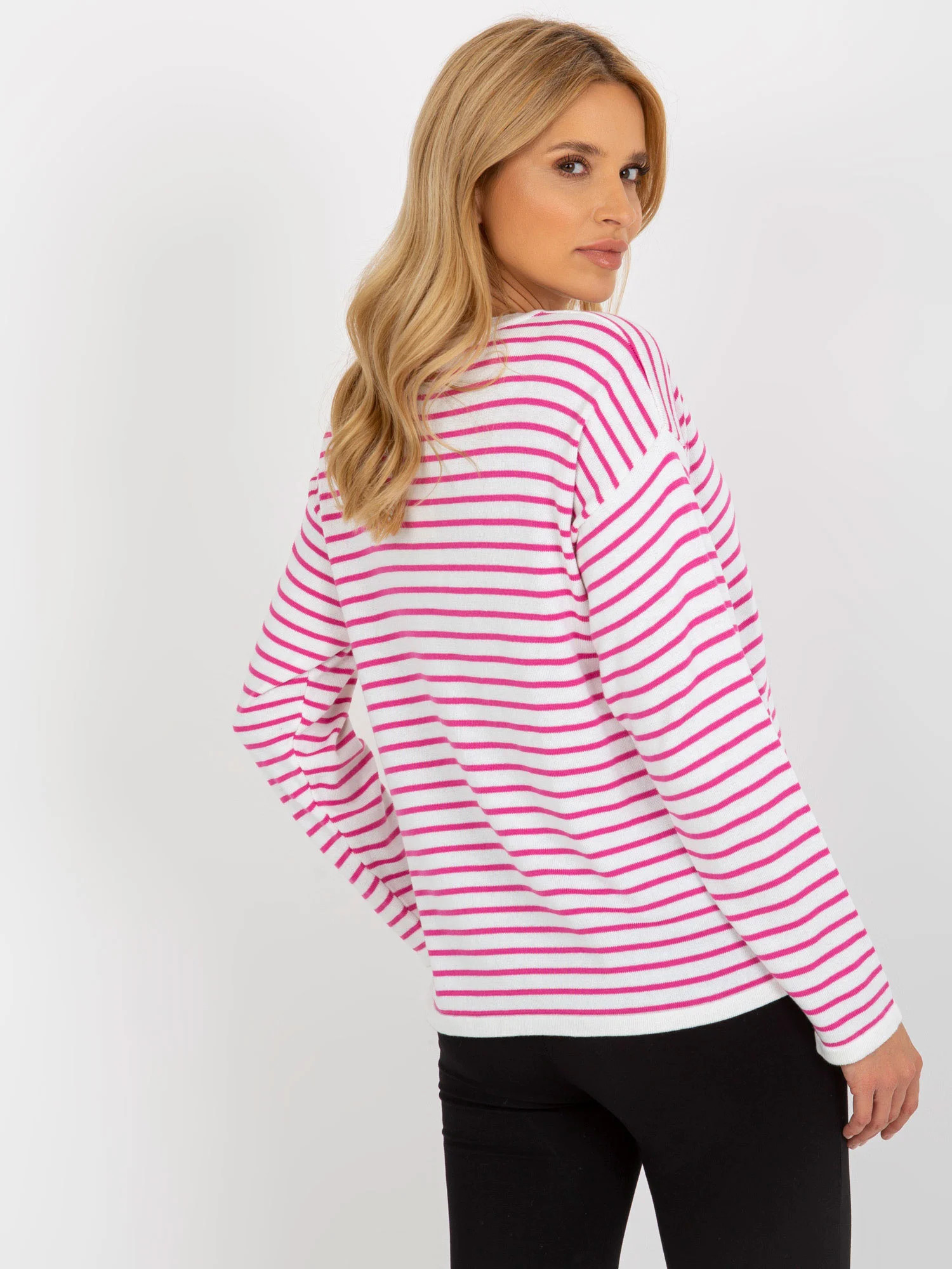 Bílý a světle fialový pruhovaný klasický svetr od značky RUE PARIS .