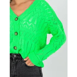Fluo zelený prolamovaný letní svetr s knoflíky RUE PARIS .