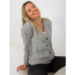 Šedý prolamovaný letní svetr se zapínáním na knoflíky značky RUE PARIS .