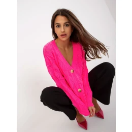 Fluo růžový prolamovaný svetr na knoflíky od značky RUE PARIS .