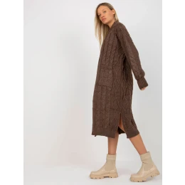 Hnědý maxi svetr s kapsami od RUE PARIS .