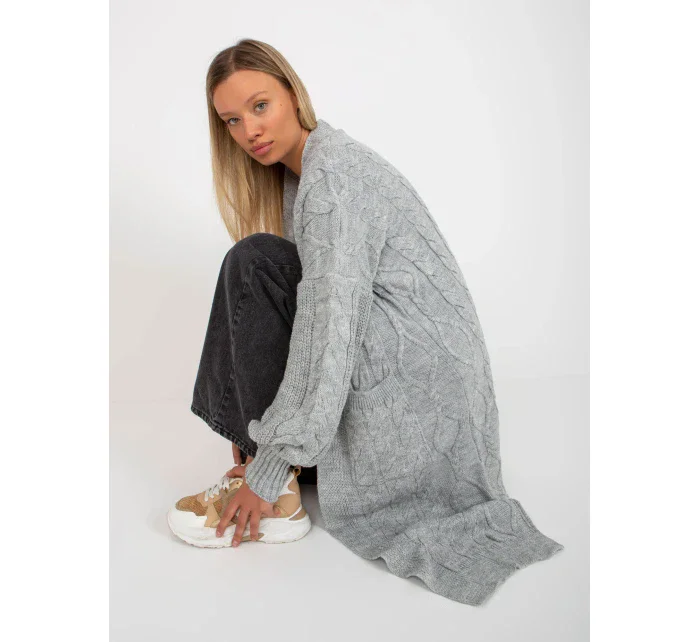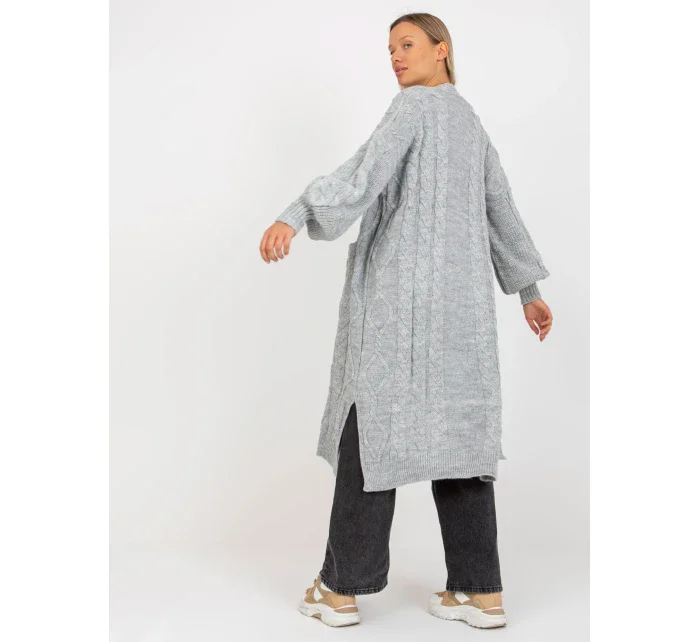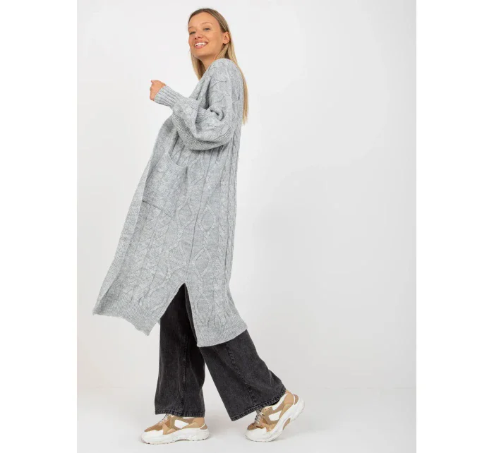 Šedý maxi kostkovaný svetr od RUE PARIS .