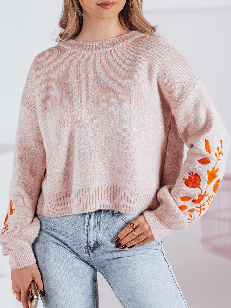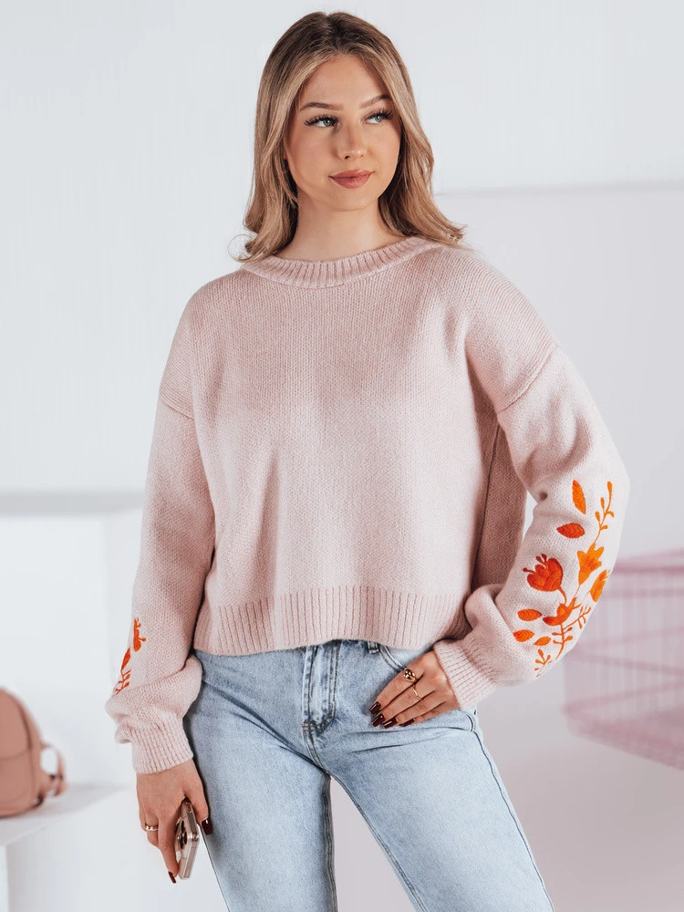 Dámský svetr LYRA je módní a pohodlnou volbou pro chladnější jarní dny. Svetr je vyroben z látky příjemné na dotek a má mírně kratší střih, který je pohodlný a zároveň stylový. Díky jemným žebrovaným lemům na rukávech, u krku a ve spodní části svetru dokonale padne. Další půvab mu dodávají vyšívané květiny na rukávech, které mu dodávají jemnou eleganci.