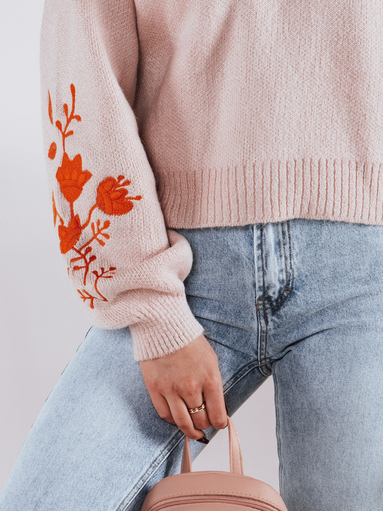 - Detaily: Vyšívané květiny na rukávech dodávají výrobku jemnou eleganci a činí jej jedinečným mezi ostatními svetry.