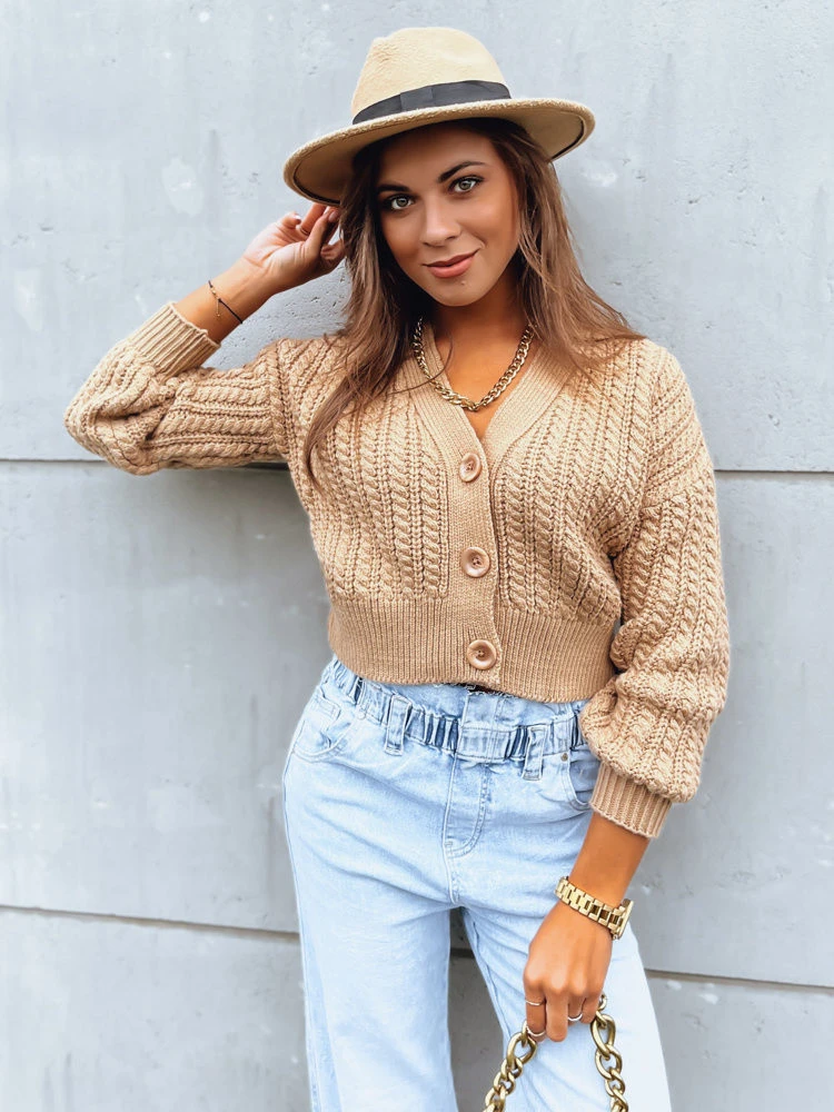 Kratší svetr MINERWA s krásnou vazbou, srdíčkovým výstřihem, stylovými knoflíky, žebrovanými manžetami a spodním lemem, který vám bude pohodlně sedět a skvěle doplní každý outfit, je nezbytnou součástí vašeho šatníku.